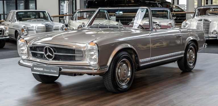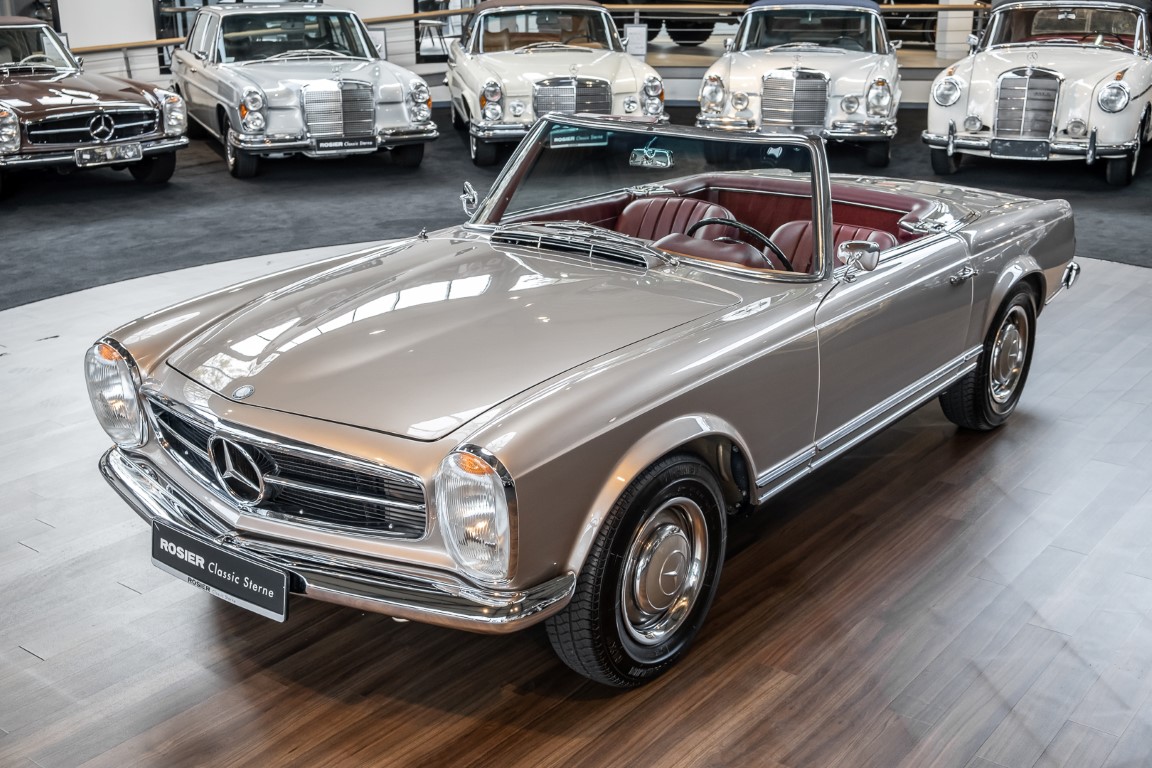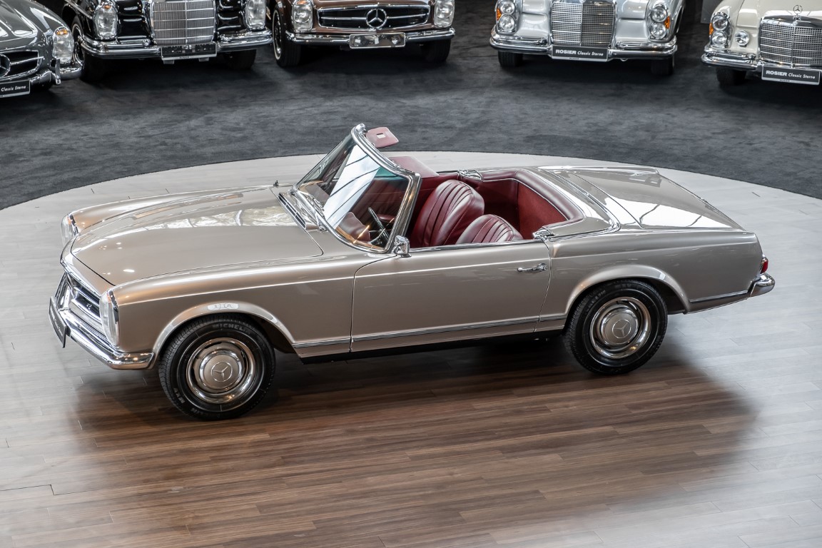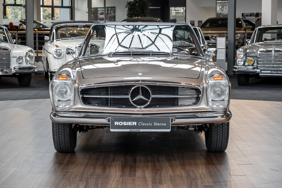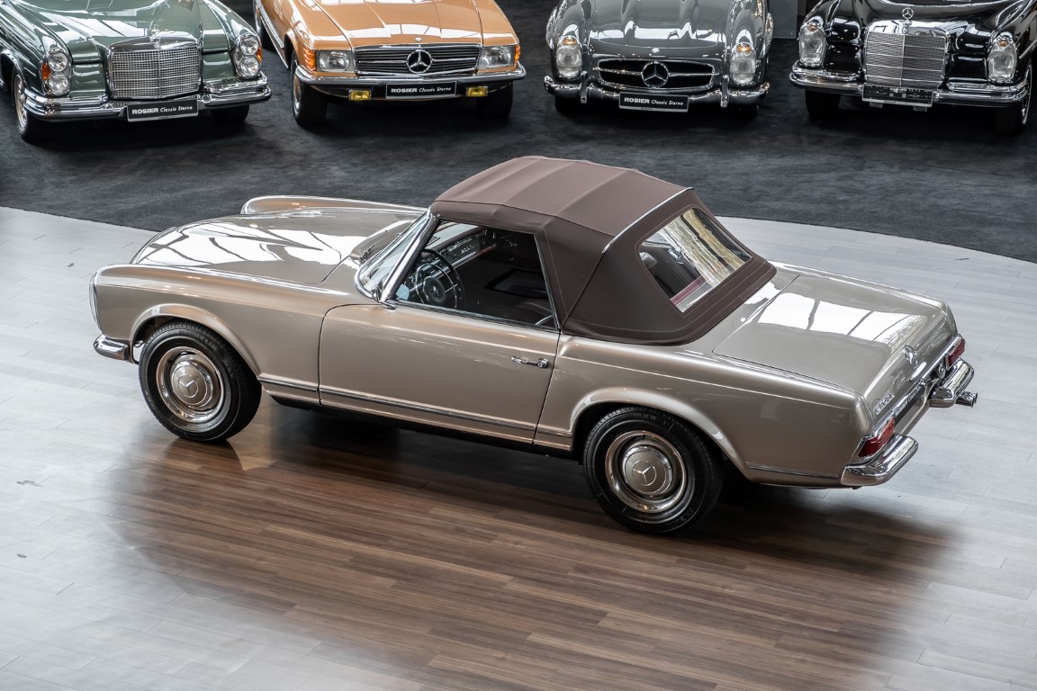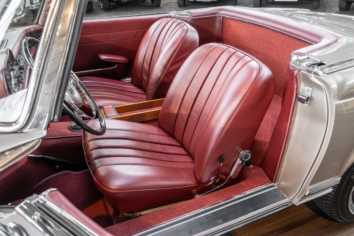 We are pleased to offer you this 230 SL pagoda from the first year of production 1963, which is very popular among collectors - which stands out from its later siblings due to the rare standing spare wheel. The vehicle comes from the sunny south of France, from the picturesque Coté d' Azur. A lady from neighbouring Italy owned this elegant pagoda for 32 years. In 2011, the pagoda, which was preserved in very good original condition, was sold and subsequently came to Germany.