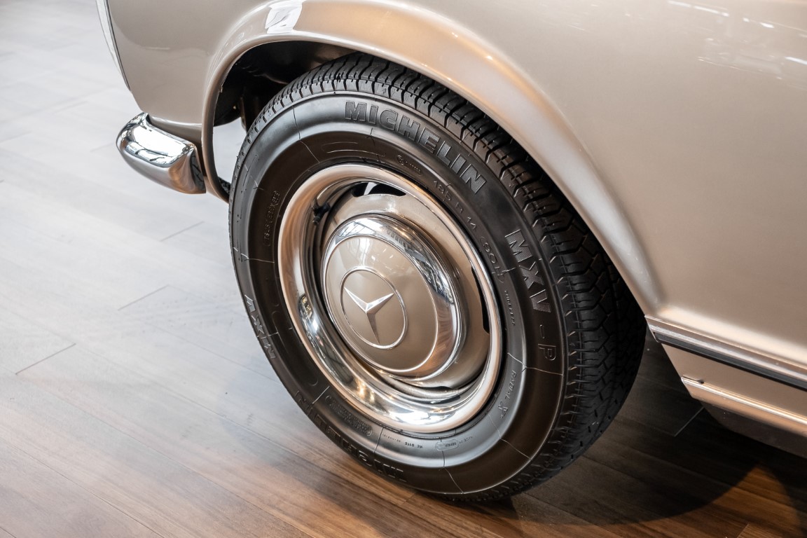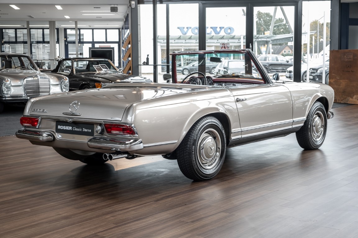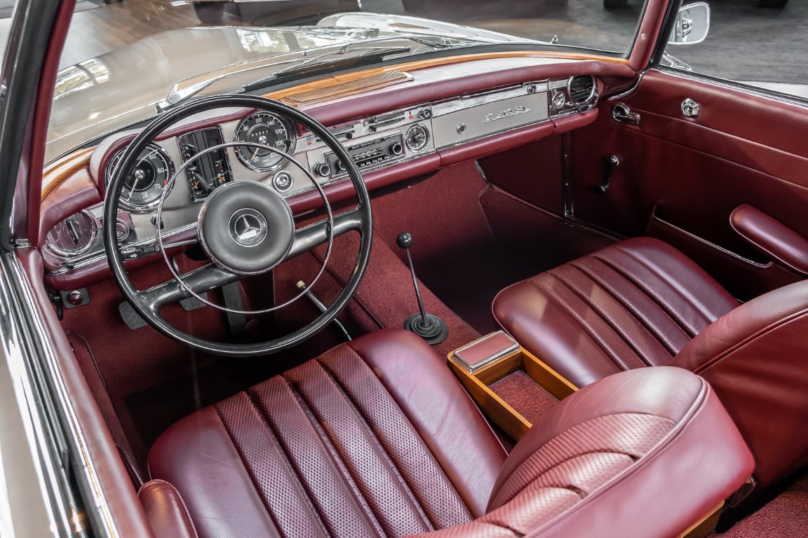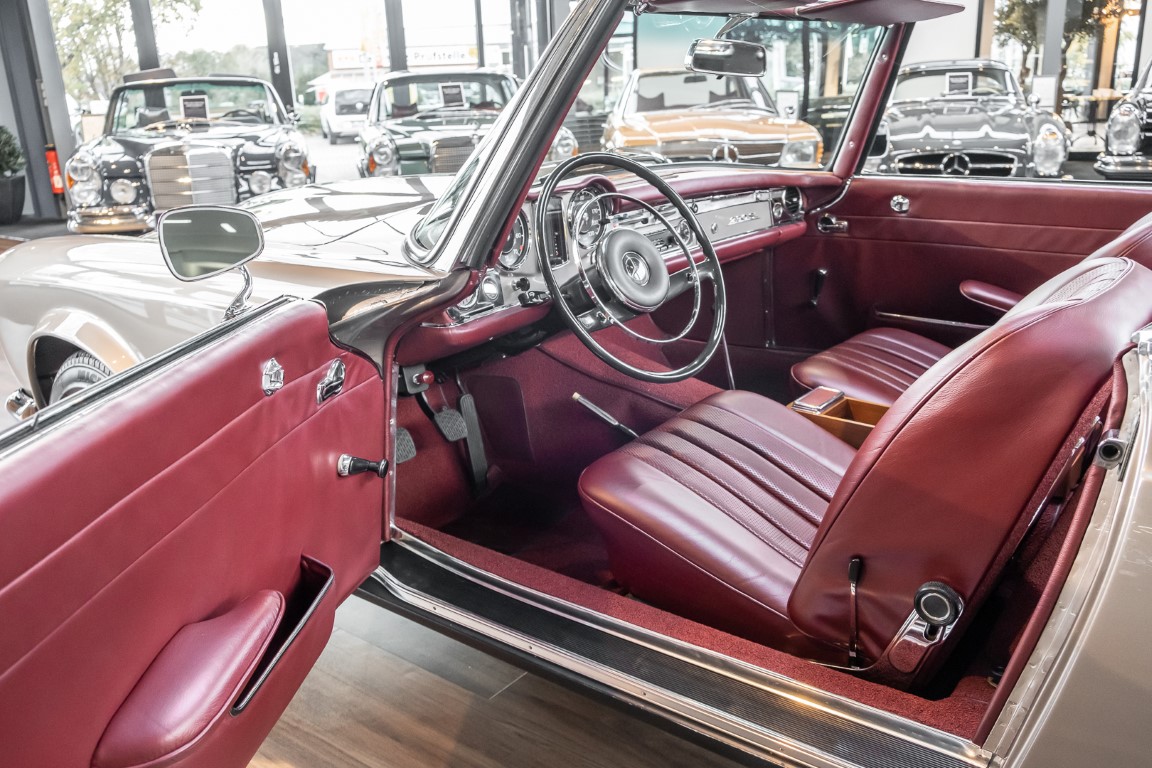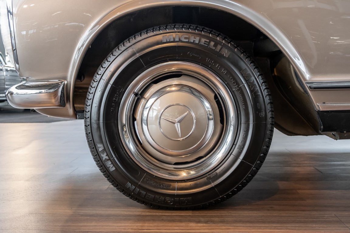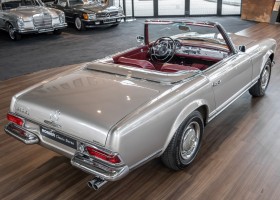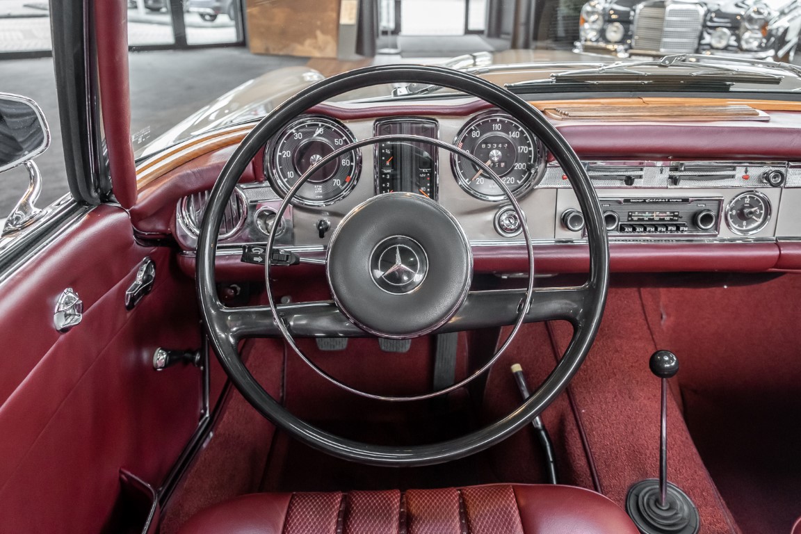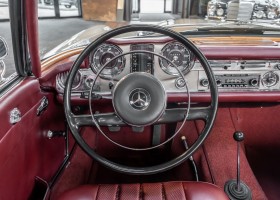 Thus this pagoda presents itself in unique elegance. The engine runs smoothly as one would have expected from an in-line six-cylinder engine, the gears of the manual transmission can be shifted easily and precisely and the power steering makes the Pagode agile and gives a safe and pleasant driving experience.