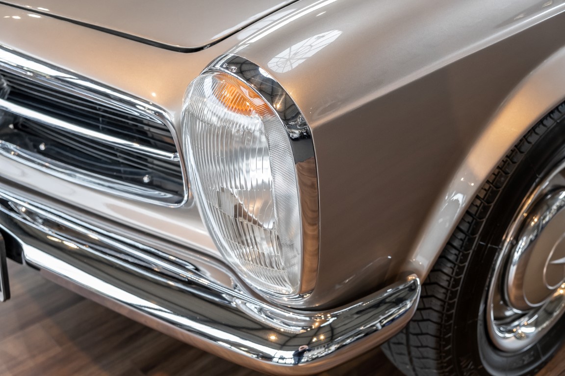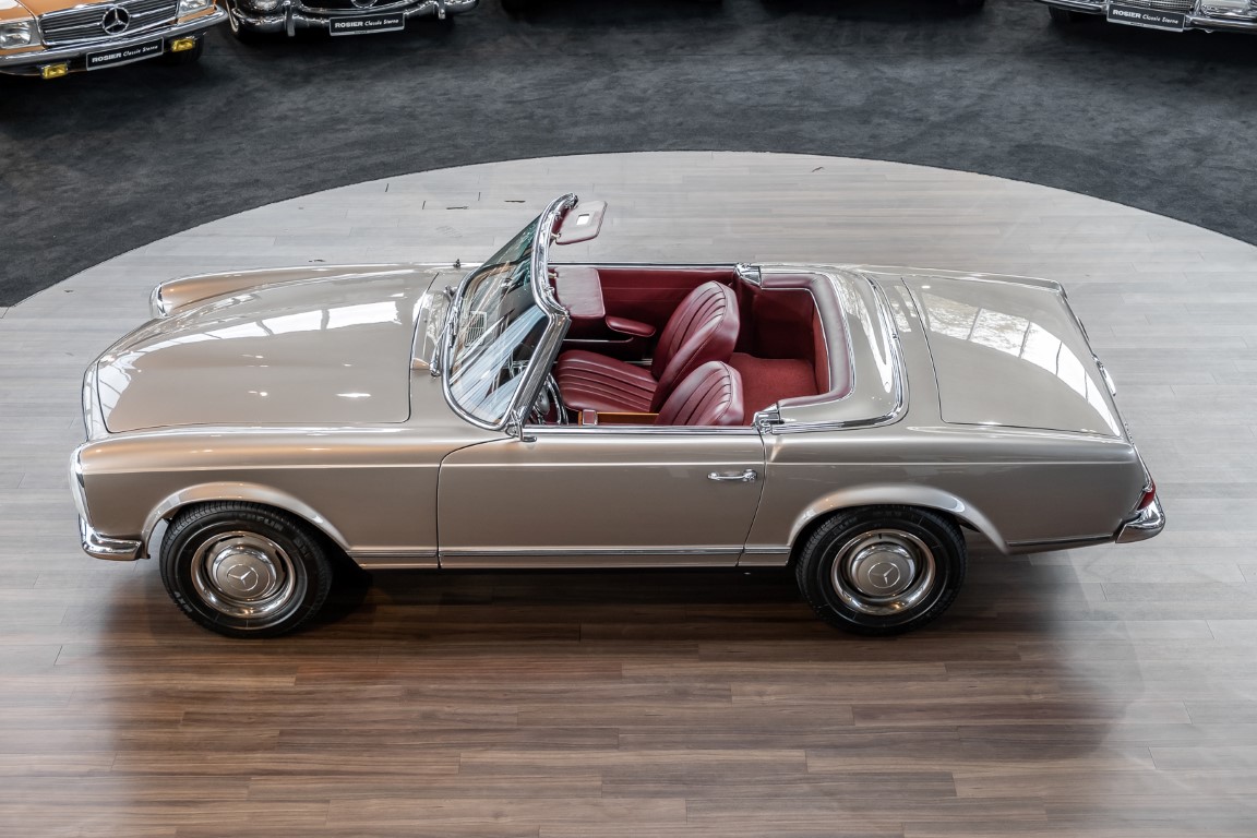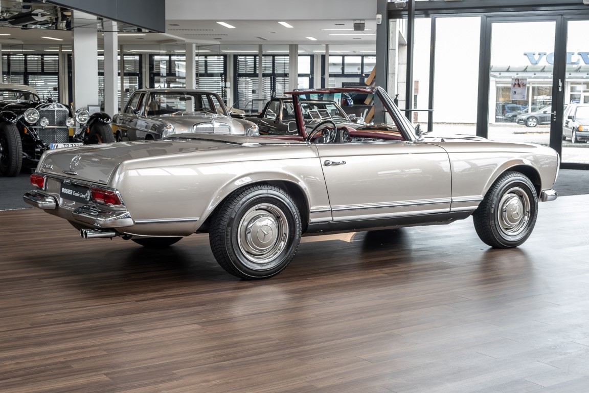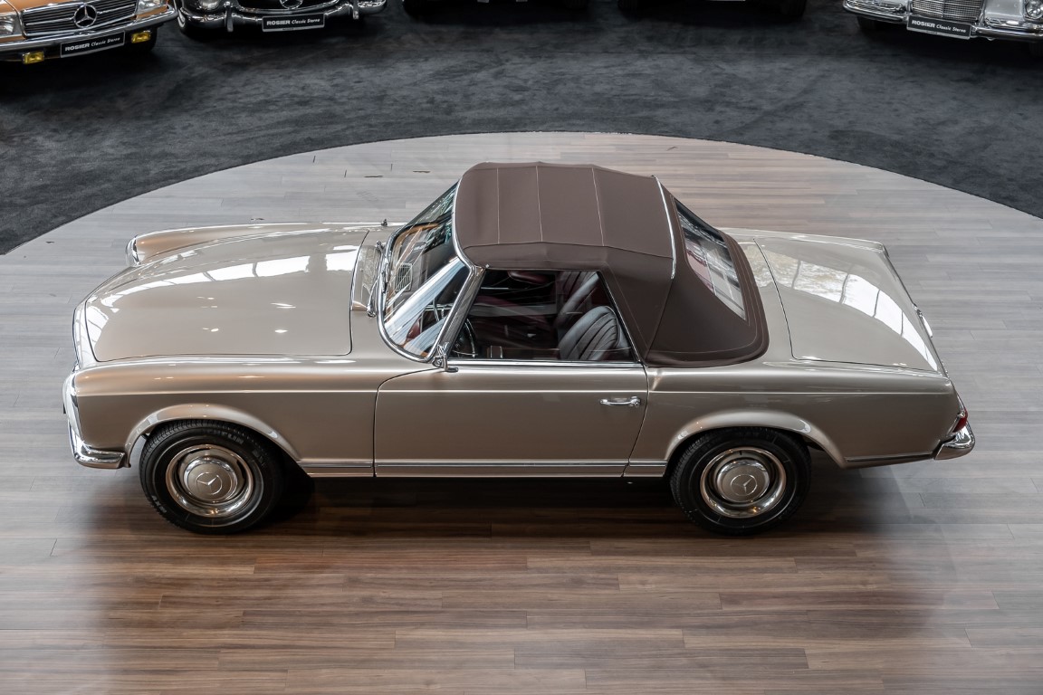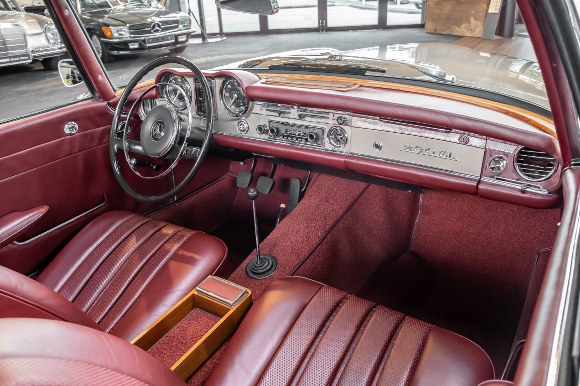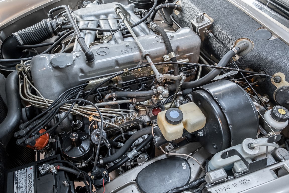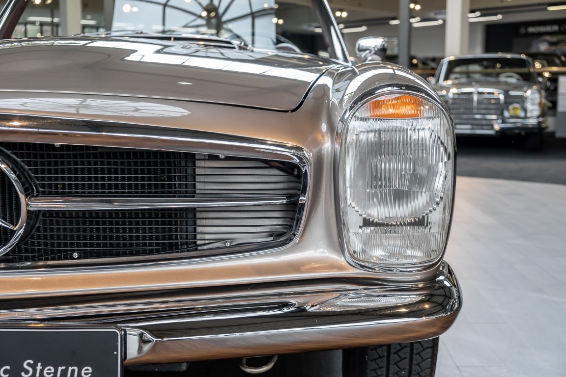 Thus this pagoda presents itself in unique elegance. The engine runs smoothly as one would have expected from an in-line six-cylinder engine, the gears of the manual transmission can be shifted easily and precisely and the power steering makes the Pagode agile and gives a safe and pleasant driving experience.