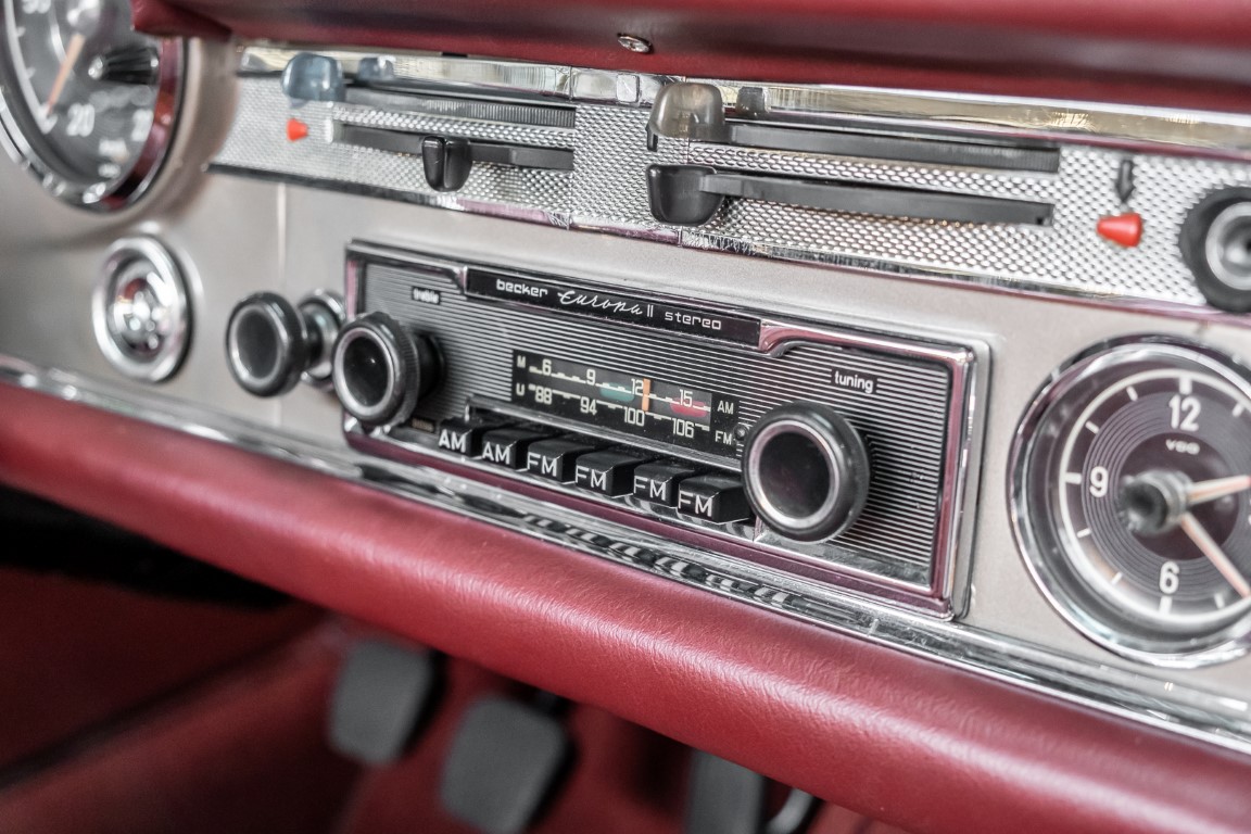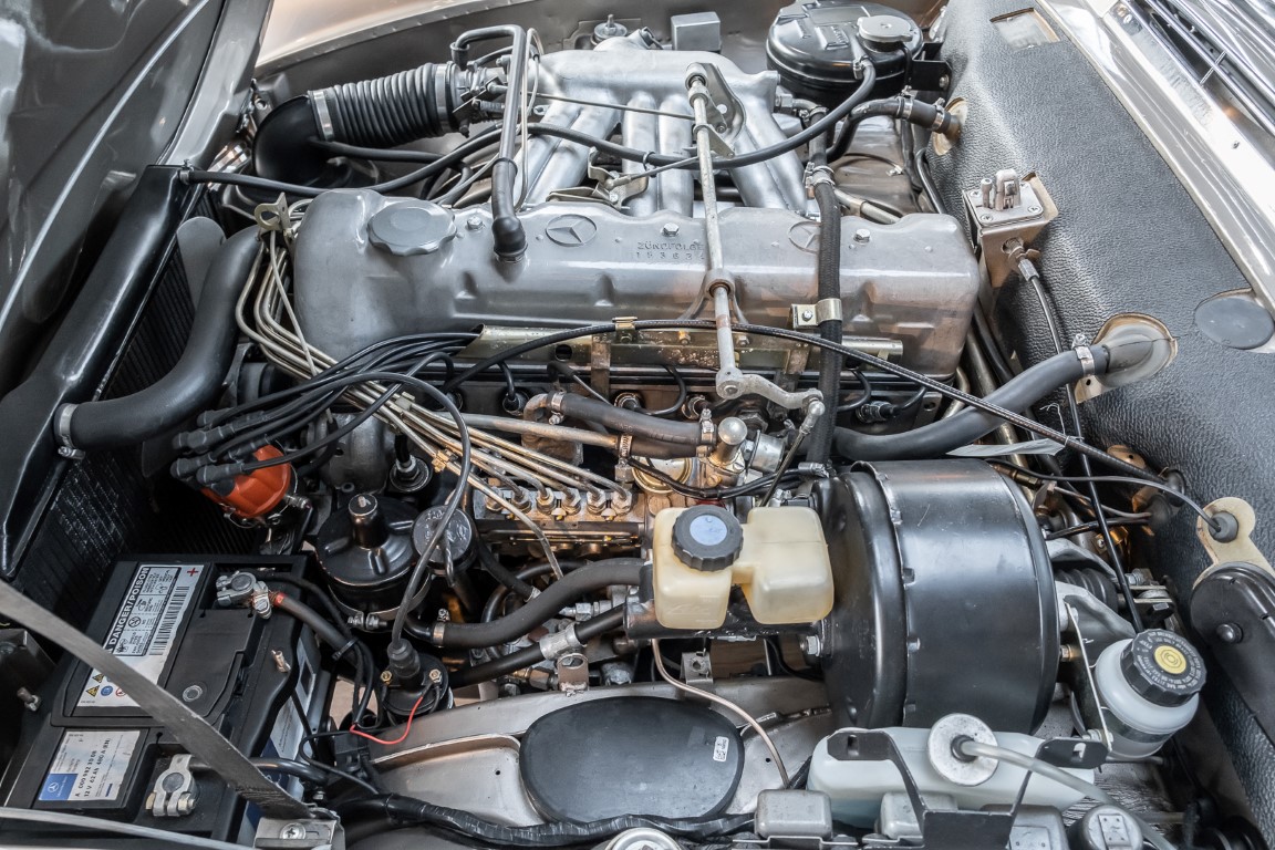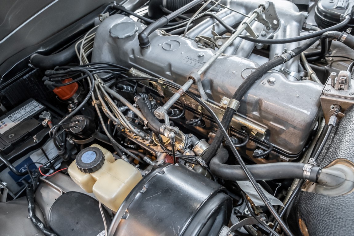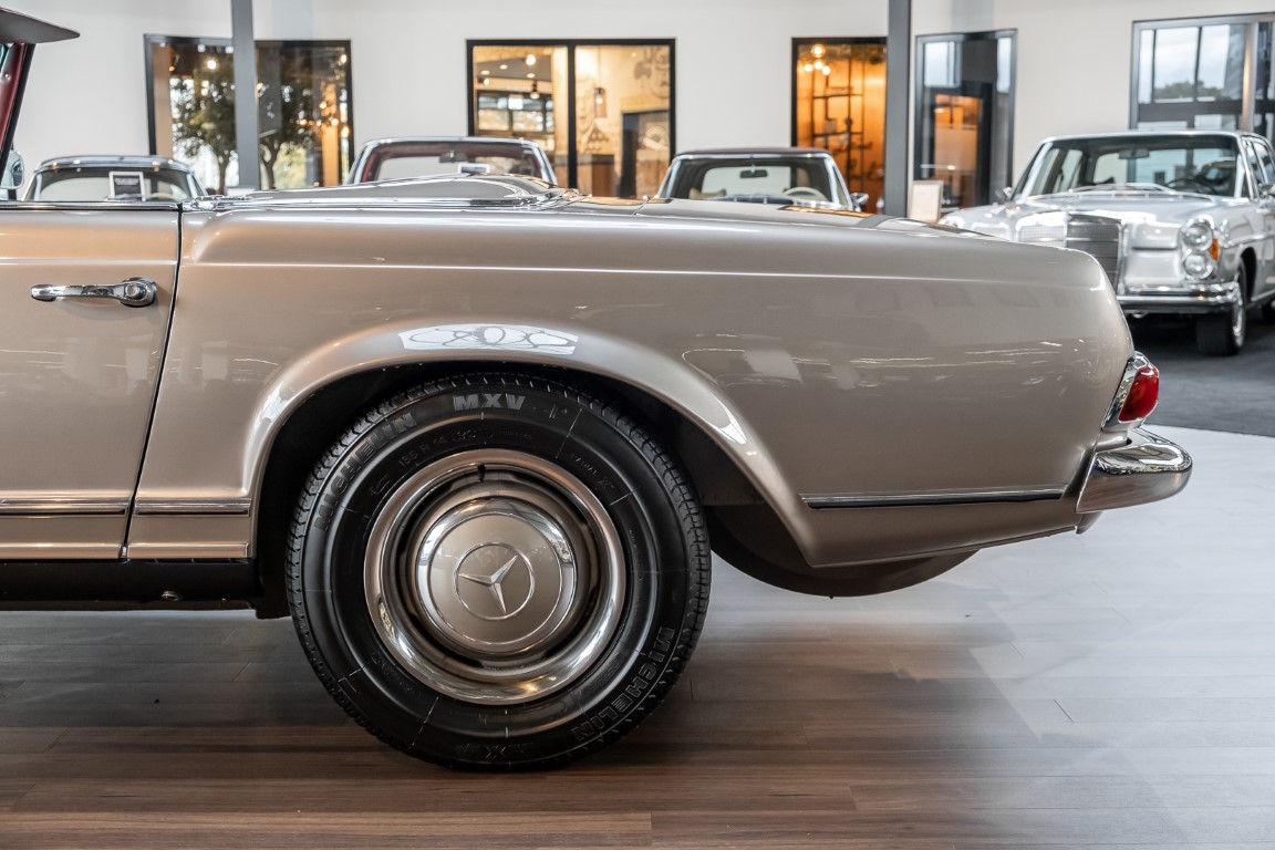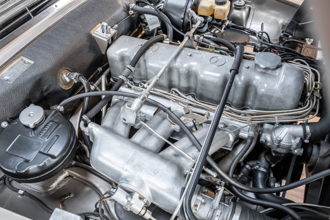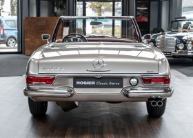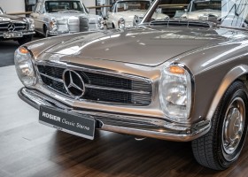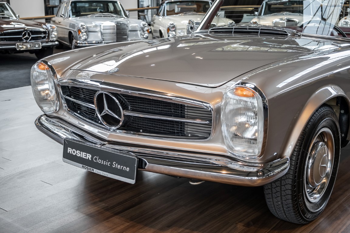 Thus this pagoda presents itself in unique elegance. The engine runs smoothly as one would have expected from an in-line six-cylinder engine, the gears of the manual transmission can be shifted easily and precisely and the power steering makes the Pagode agile and gives a safe and pleasant driving experience.