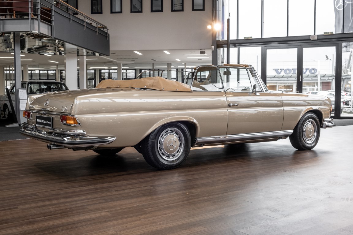 The 280 SE 3.5 Cabriolet offered here in sand beige metallic was delivered on 01.04 1971 to a company based in Munich. The car was regularly serviced at the Mercedes-Benz partner Werlin in Rosenheim, which can be seen impressively in the original customer service checkbook. When the elegant convertible was sold in the 1980s, it found its new home in faraway Japan. It was given a worthy place in a recognized museum in Tokyo/Japan and remained there for over 20 years.