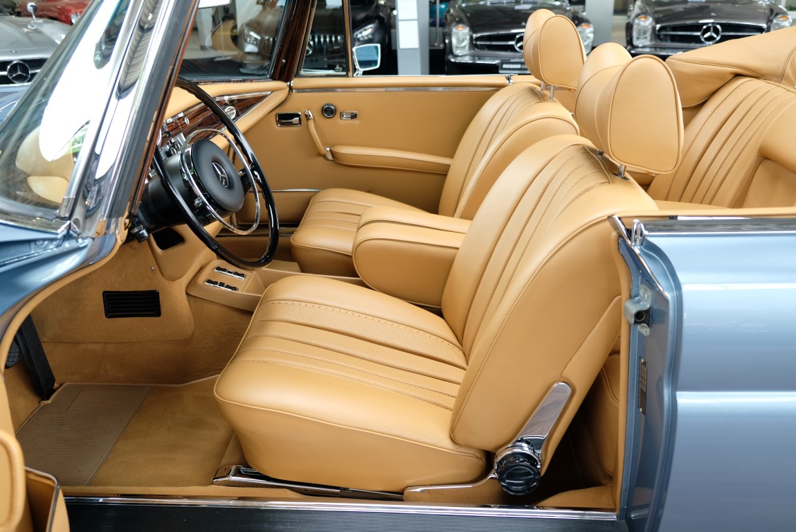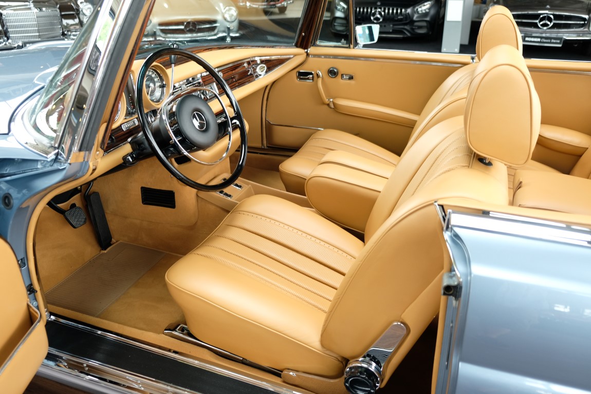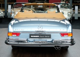 He had almost full equipment at that time. From the valuable original Behr air conditioning over center armrests, Becker radio, power windows to the lush, fragrant leather interior, everything was available. After spending many years in Sunshine State Florida, in a pompous mansion in Naples's best neighborhood, the car was sold to Germany in 2014 and became the property of the Rosier Classic stars in Oldenburg. One customer purchased the Cabriolet and commissioned Rosier Classic stars with a quality restoration. He wanted to have the car at least in new vehicle delivery condition. In over 3 years of work, the car was disassembled to the body shell, removed the old paint and made a new paint system in the original color 906. The chrome trim has been renewed or revised where appropriate. The axles were overhauled, as were the V8 engine and the automatic transmission. It would be an ultra-long description if we were to list the entire scope here. At the end of the car received a completely new leather interior with head-dyed leather in the original Mercedes color Cognac. The charisma of the car is enormous, the goal of achieving a new car condition was, in our opinion, best achieved. A change in the collection of our customer brings us the luck to offer this dream car for sale. With a cup of good coffee we are happy to show you what a great job this convertible has achieved. The purchase of the vehicle includes a two-year Classic Star Warranty.