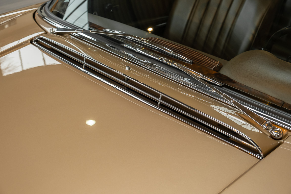 We are pleased to offer you this expressive 3.5-liter coupe with German first registration. A look at the vehicle registration document reveals that a great in the classic car scene was also addicted to the charm of this coupe. The dream coupe has been disassembled and rebuilt "down to the last screw". The engine, the transmission, the front and rear axle as well as all auxiliary units have been revised or replaced. The two-tone paint in sand beige metallic and dark red bruan harmonizes perfectly with the tobacco brown leather upholstery and the burl wood veneers, whose hue is echoed exactly in the brown roof. A color combination that has its own special appeal and exudes enormous radiance. Experience the charm of this luxury coupe of the 70s.