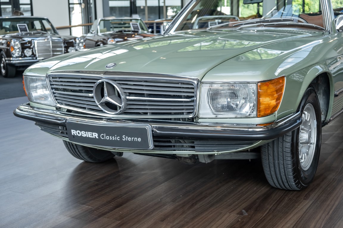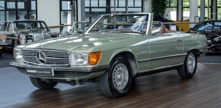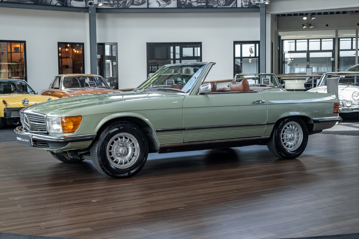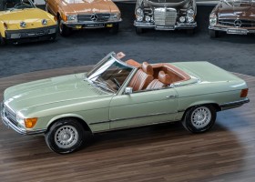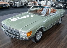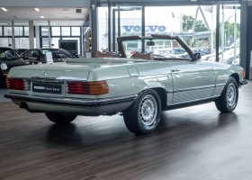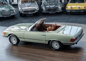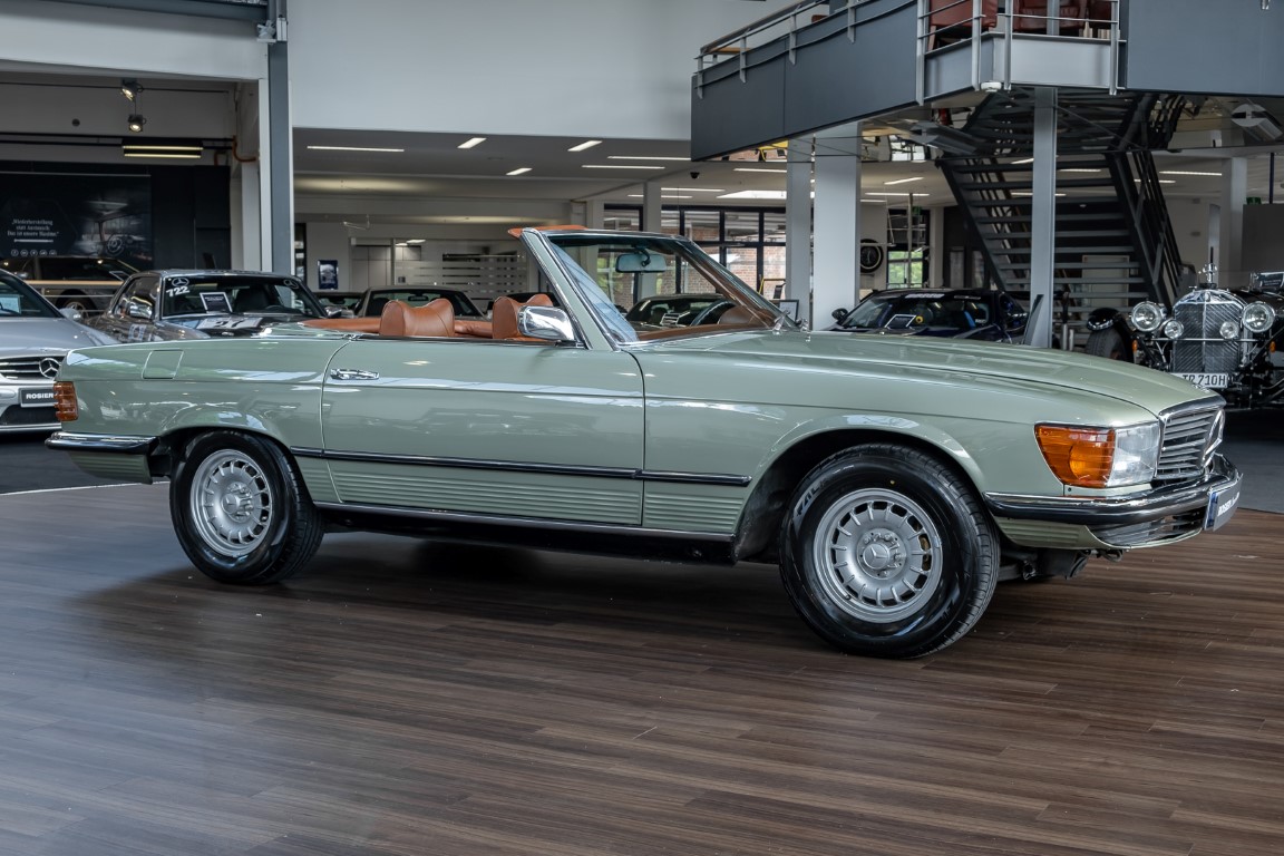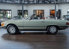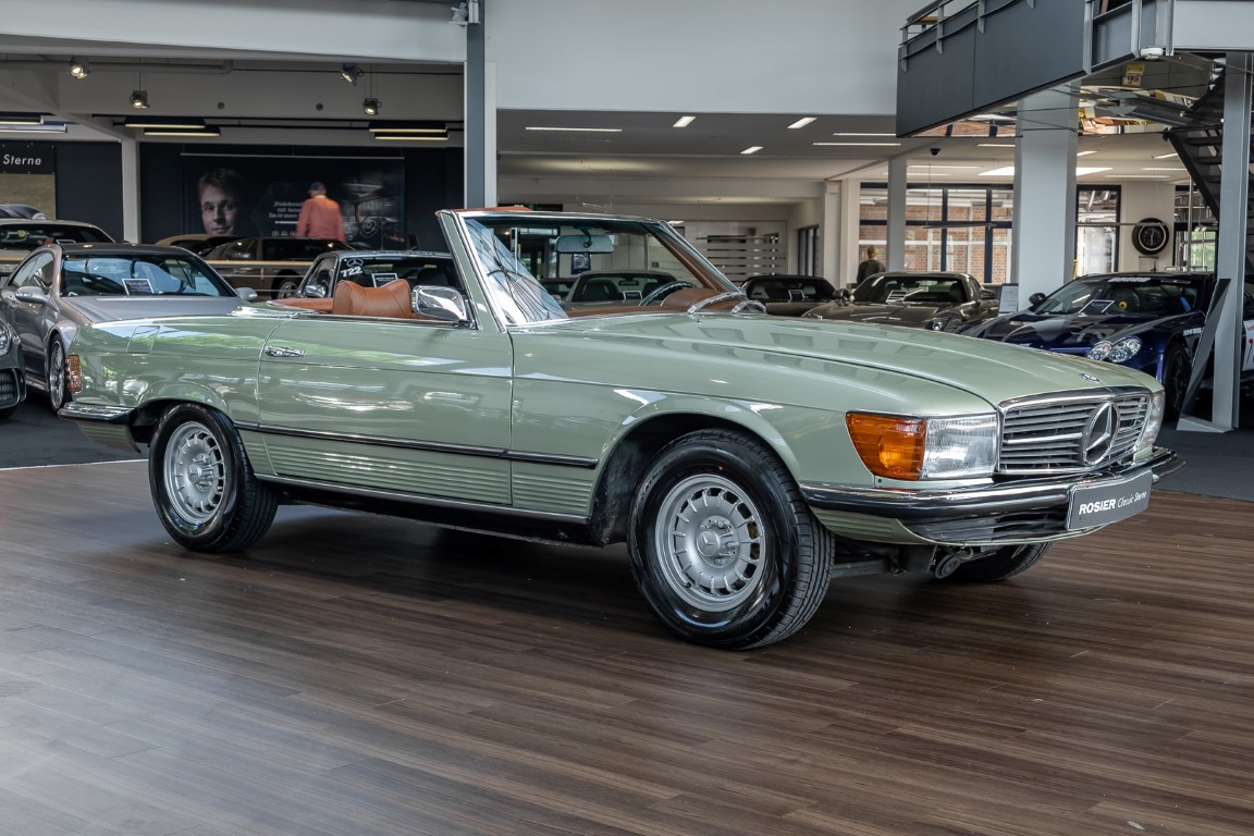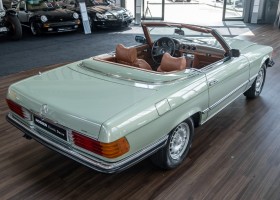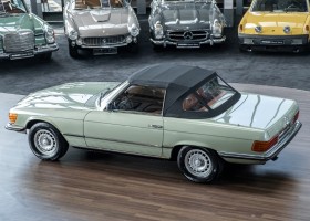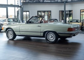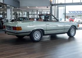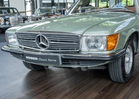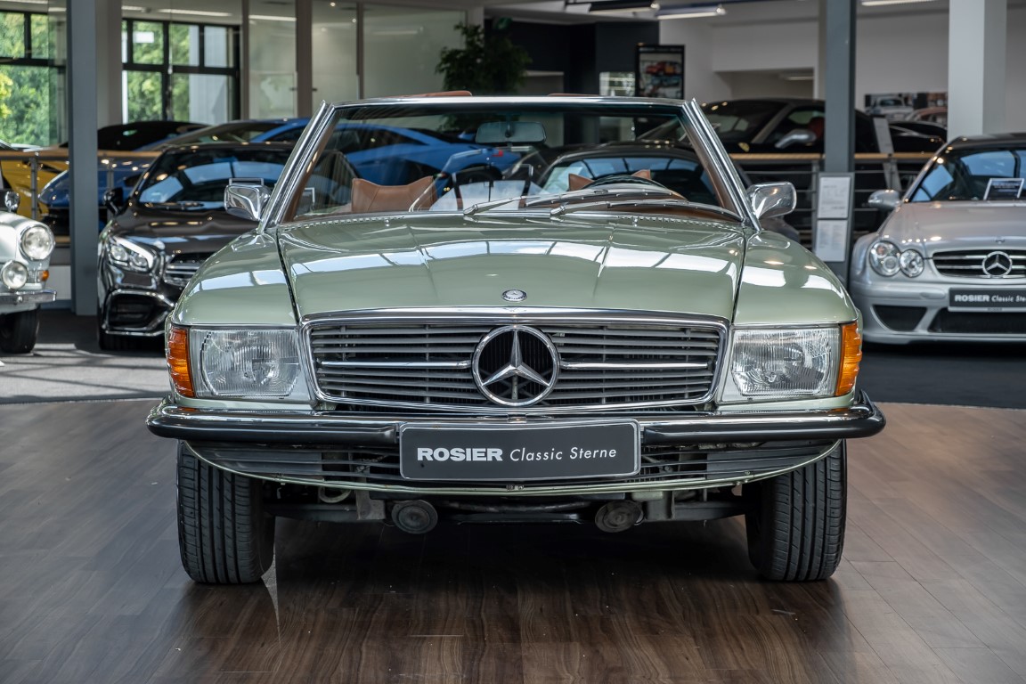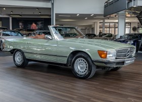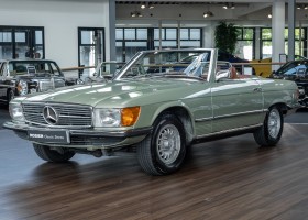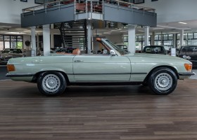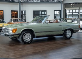 This much sought-after roadster in matching silver-green metallic from 1975 is presented in an honest, used but well-kept condition. The owner of the vehicle had the vehicle reworked in our manufactory under a not inconsiderable financial investment and was brought into a good 3-series condition. The vehicle starts, drives and brakes as it should and gives its driver and co-driver a lot of pleasure in every situation. As a Dailydriver this SL, the much sought-after 107 series, will continue to give much pleasure. Get in and experience it for yourself. A warm welcome!