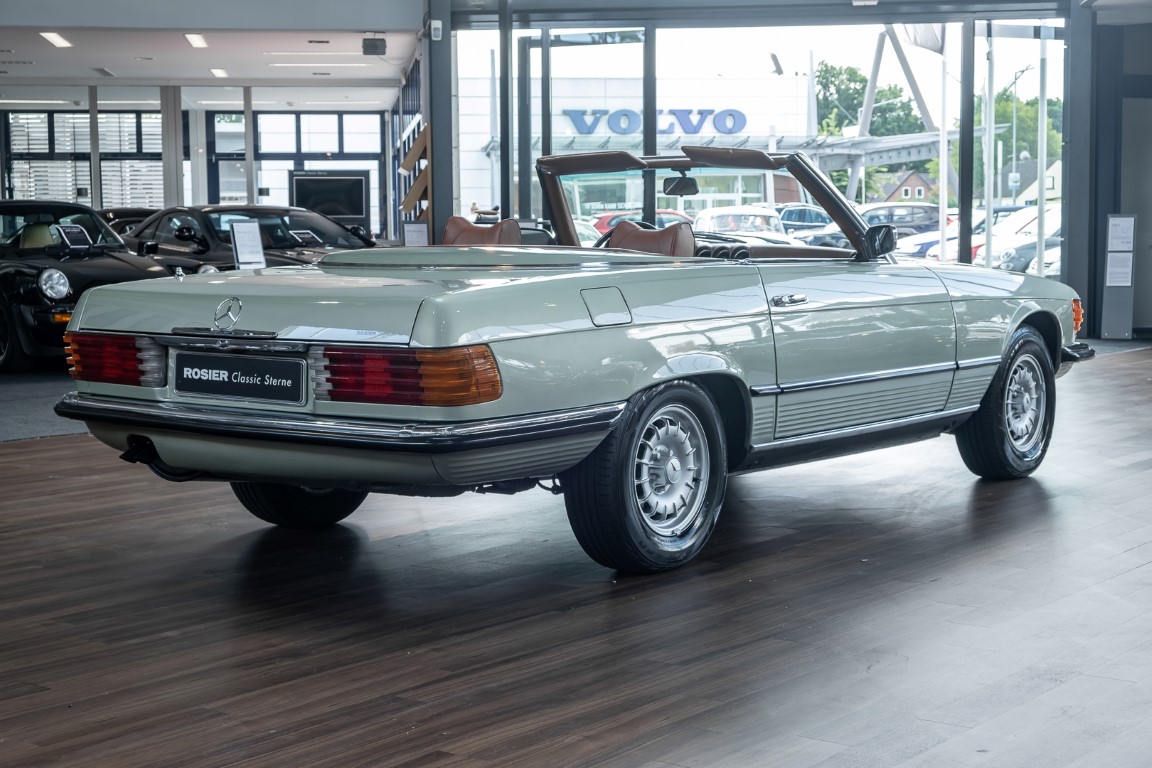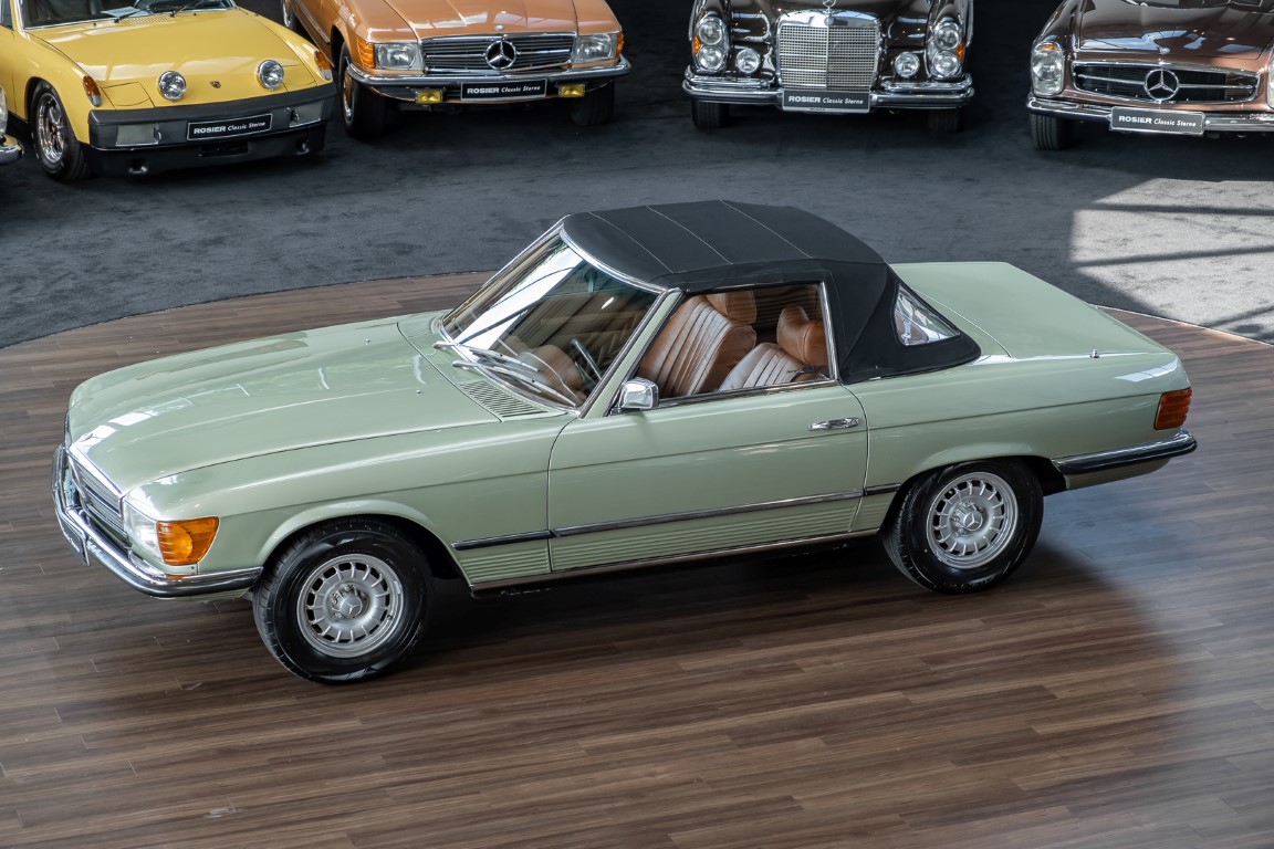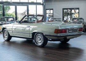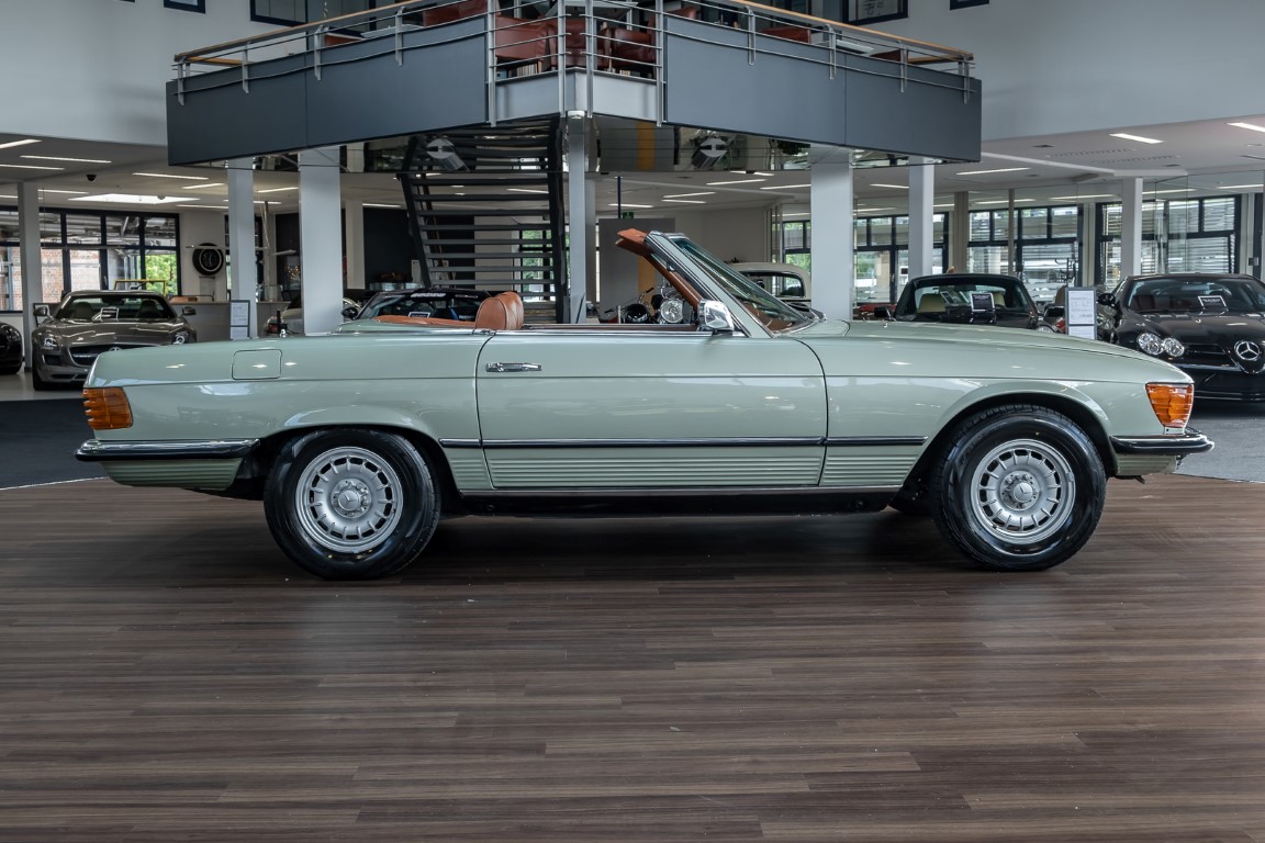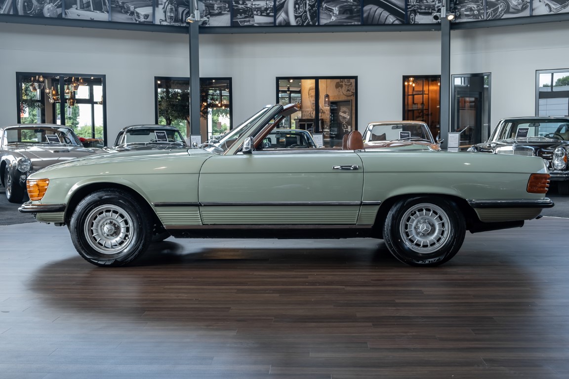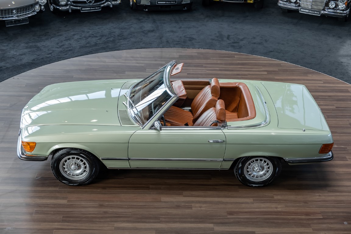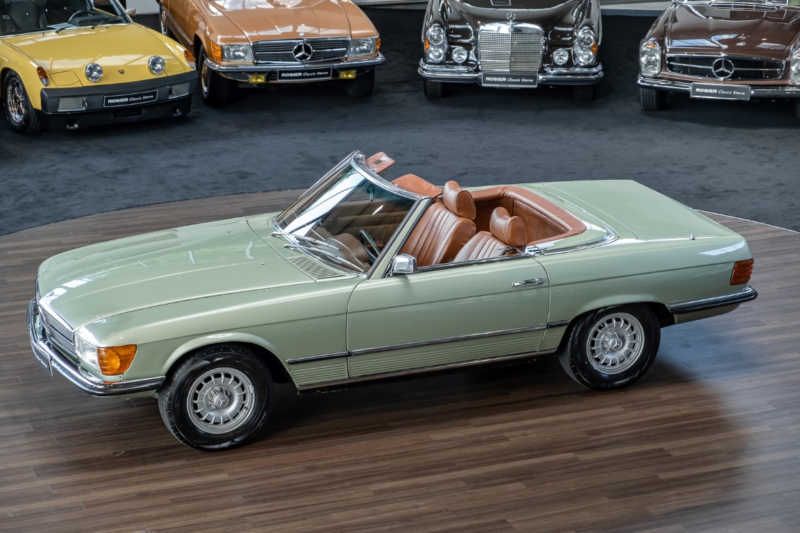 This much sought-after roadster in matching silver-green metallic from 1975 is presented in an honest, used but well-kept condition. The owner of the vehicle had the vehicle reworked in our manufactory under a not inconsiderable financial investment and was brought into a good 3-series condition. The vehicle starts, drives and brakes as it should and gives its driver and co-driver a lot of pleasure in every situation. As a Dailydriver this SL, the much sought-after 107 series, will continue to give much pleasure. Get in and experience it for yourself. A warm welcome!