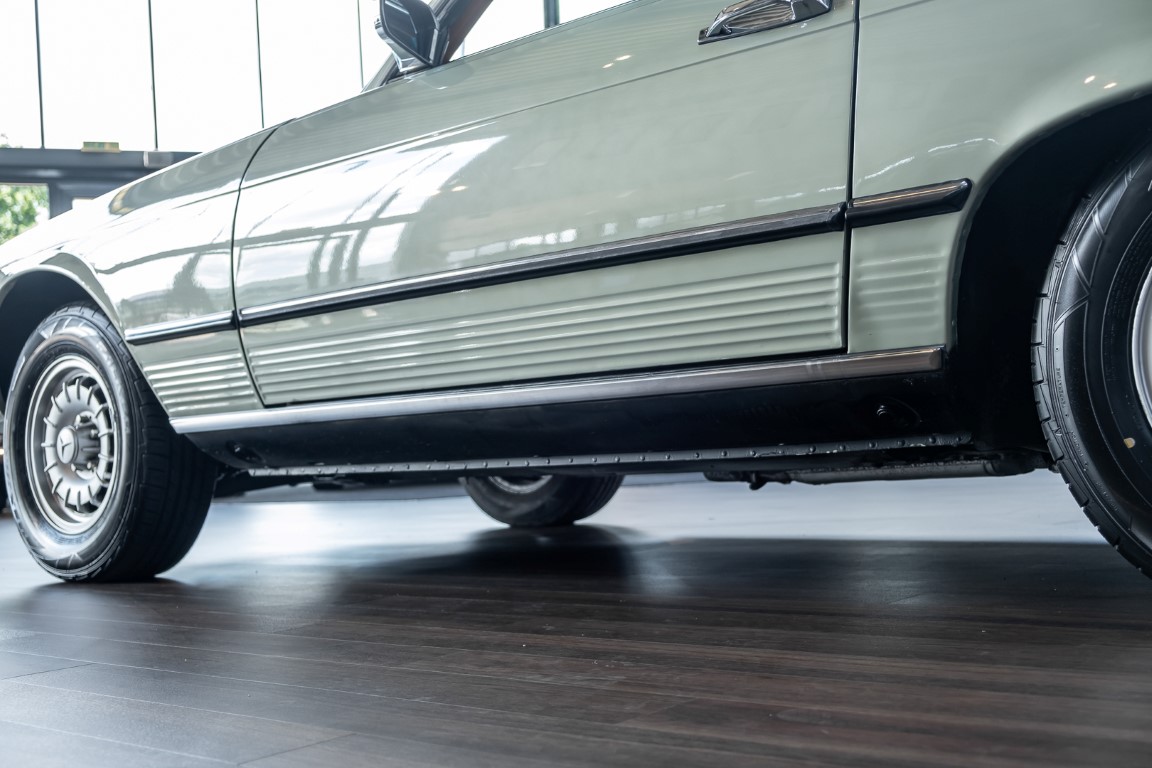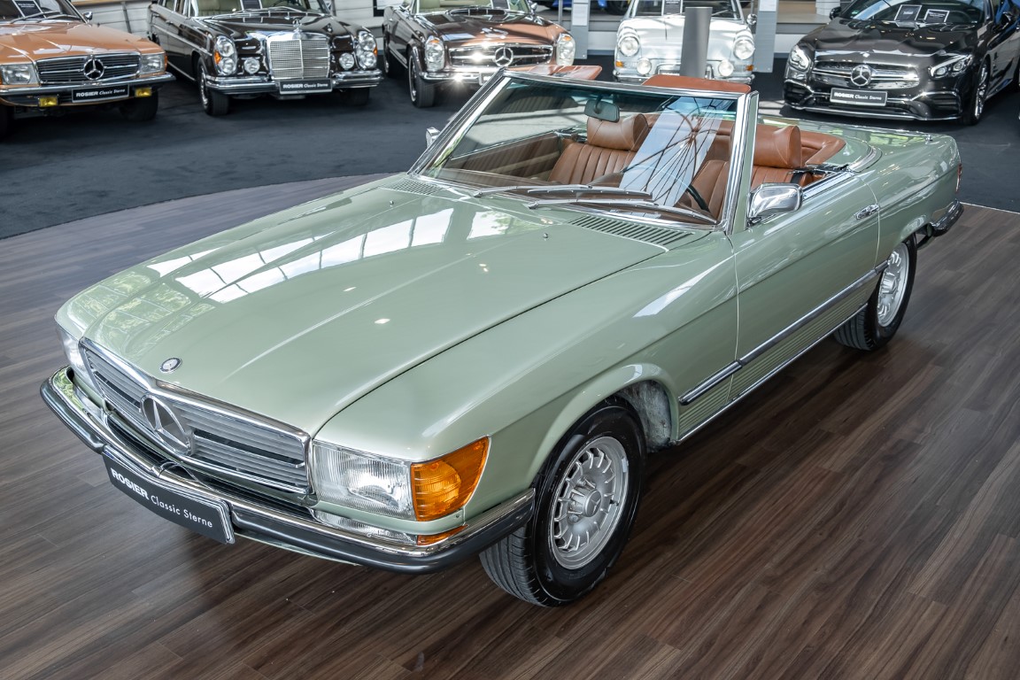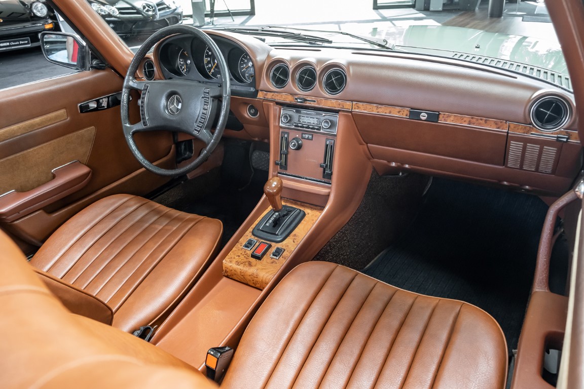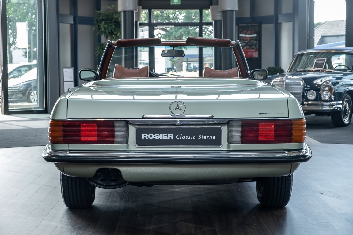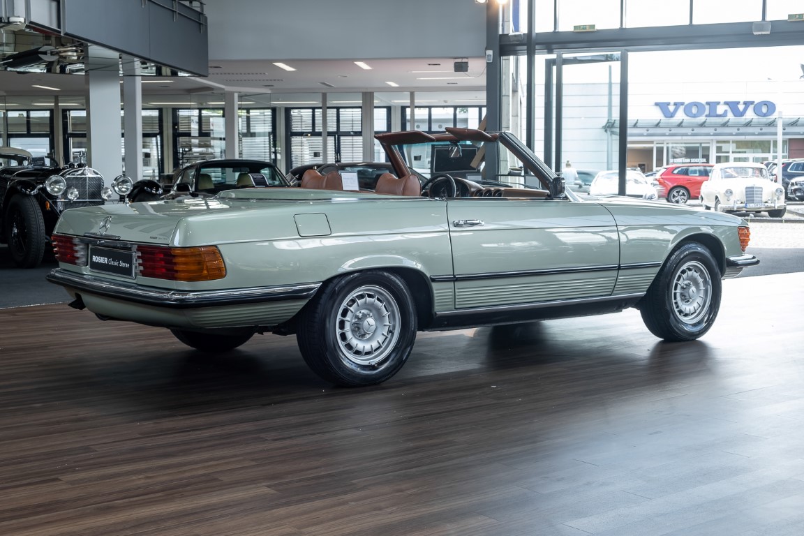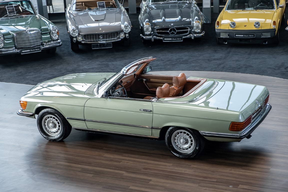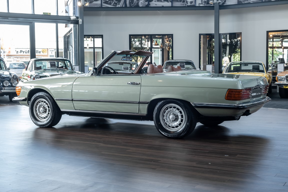This much sought-after roadster in matching silver-green metallic from 1975 is presented in an honest, used but well-kept condition. The owner of the vehicle had the vehicle reworked in our manufactory under a not inconsiderable financial investment and was brought into a good 3-series condition. The vehicle starts, drives and brakes as it should and gives its driver and co-driver a lot of pleasure in every situation. As a Dailydriver this SL, the much sought-after 107 series, will continue to give much pleasure. Get in and experience it for yourself. A warm welcome!