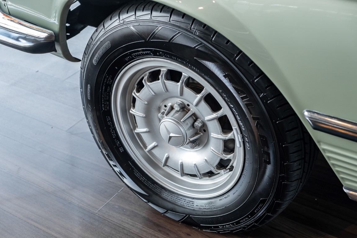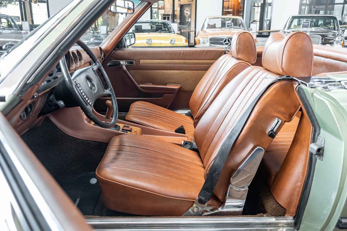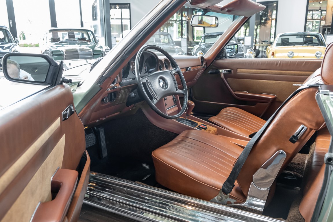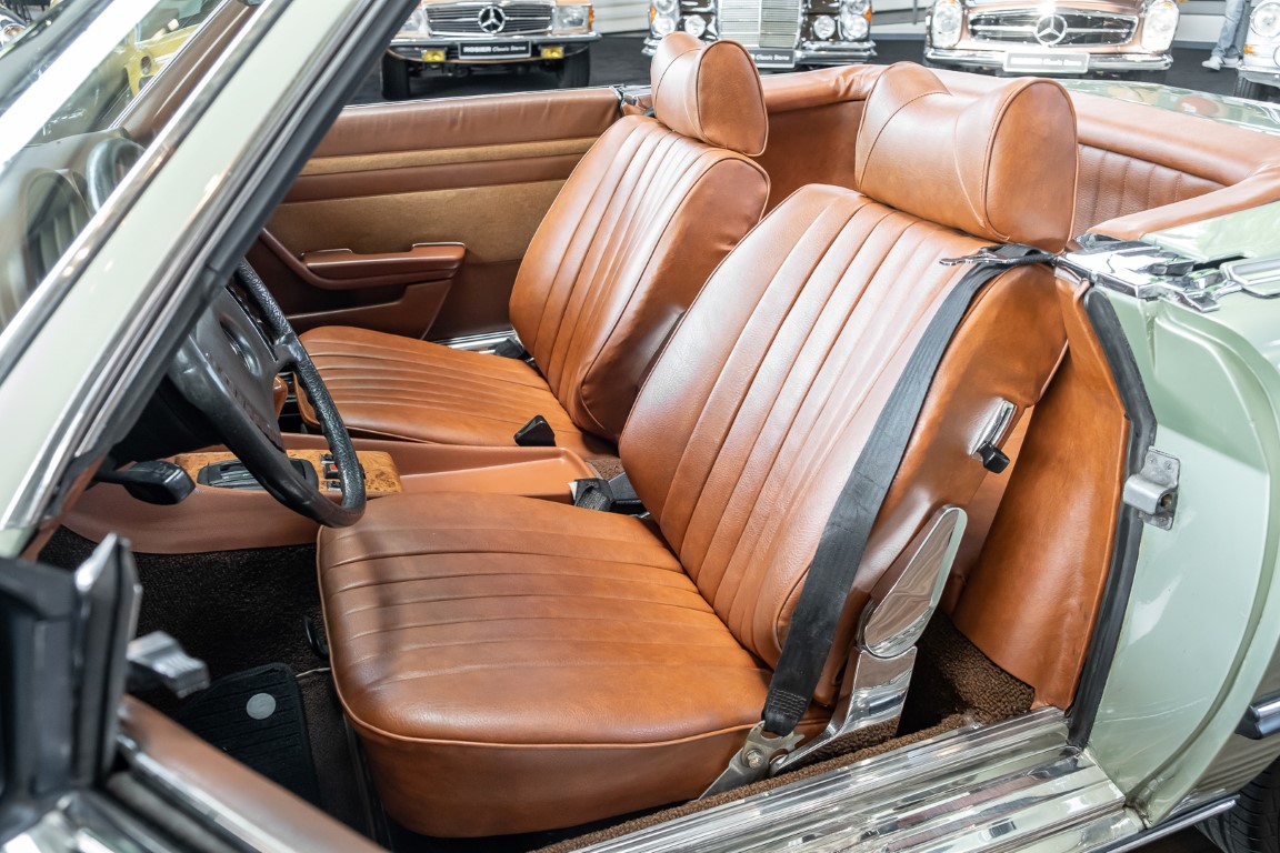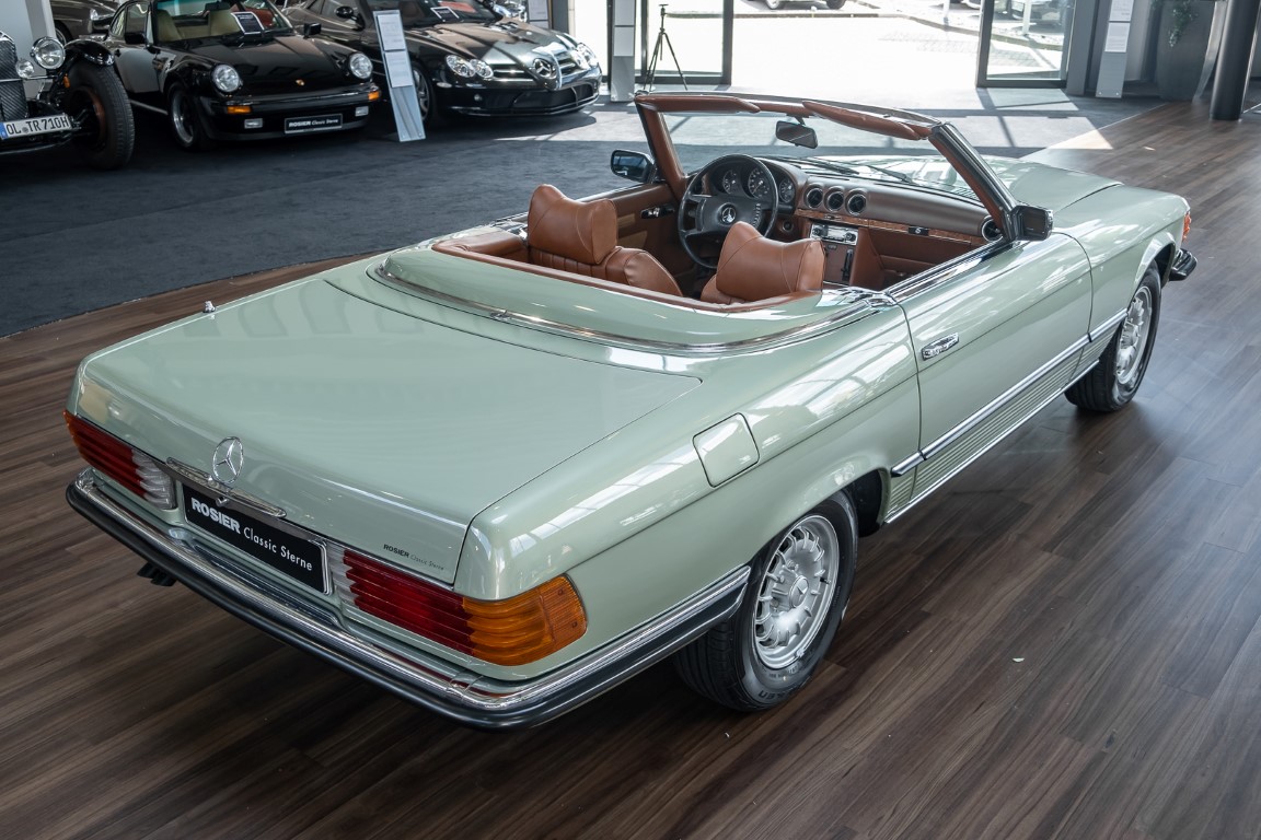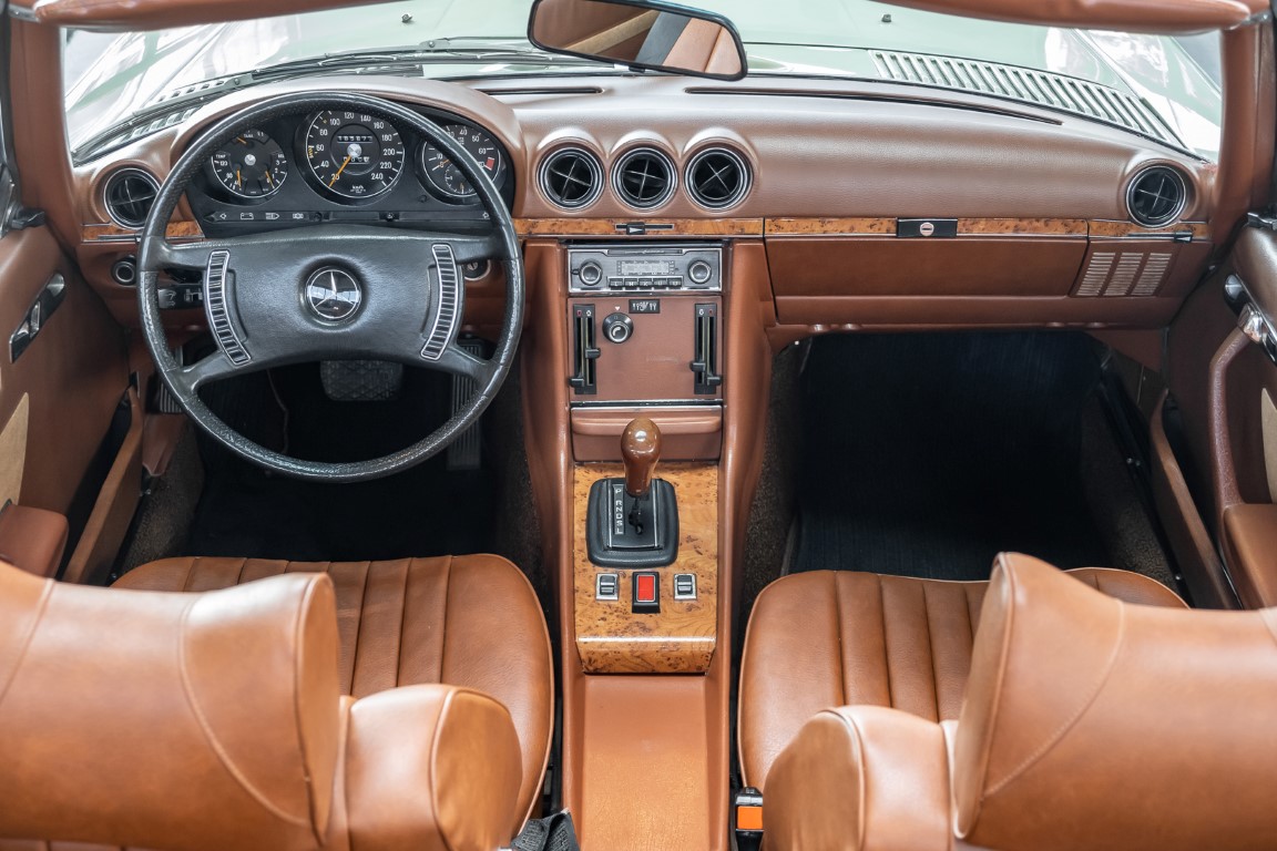 This much sought-after roadster in matching silver-green metallic from 1975 is presented in an honest, used but well-kept condition. The owner of the vehicle had the vehicle reworked in our manufactory under a not inconsiderable financial investment and was brought into a good 3-series condition. The vehicle starts, drives and brakes as it should and gives its driver and co-driver a lot of pleasure in every situation. As a Dailydriver this SL, the much sought-after 107 series, will continue to give much pleasure. Get in and experience it for yourself. A warm welcome!