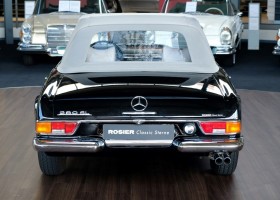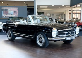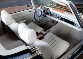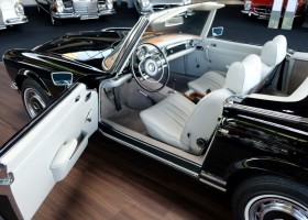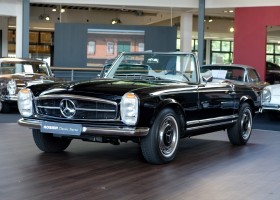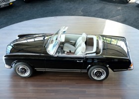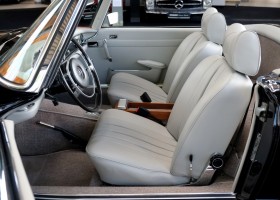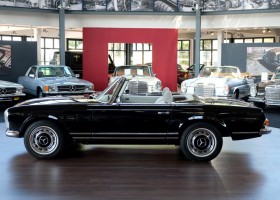 They were just around 70 years old and wanted to fulfill a long-cherished dream.They had a lot of fun at the pagoda. You kept the pagoda for about 12 years and did not give it until you decided to move to a retirement home. So the car came to Germany, to Rosier Classic sterne in Oldenburg. Here the car was subjected to extensive restoration, in the scope of which the car was completely disassembled and rebuilt. The technique has been revised and a new paint applied. When the car was completed in 2013, he found a new home in the high-quality collection of a long-standing customer of the house. Now that the collection was supplemented by another high-quality classic, had to give way to space of one of the existing vehicles. We had the choice and opted for the black 280 SL pagoda. A dream car that will surely find a new home quickly.