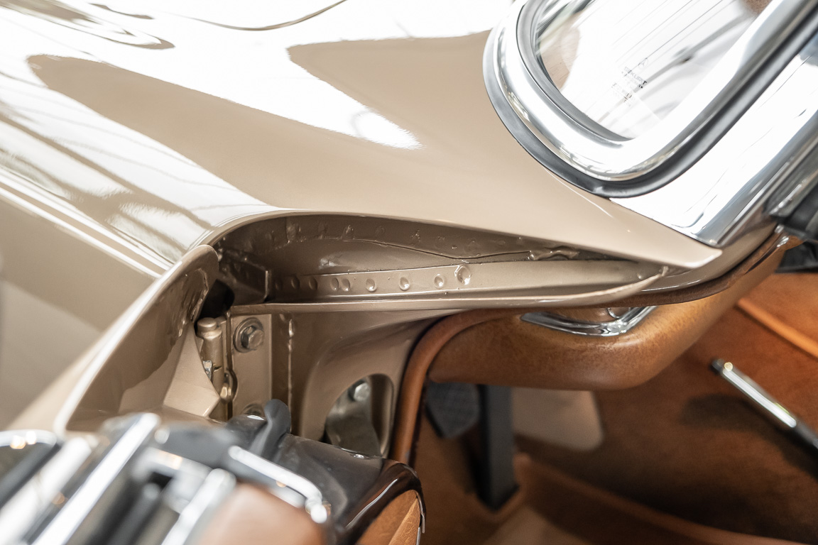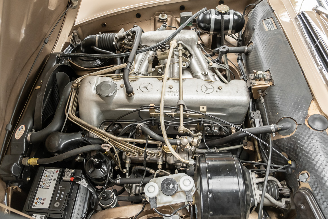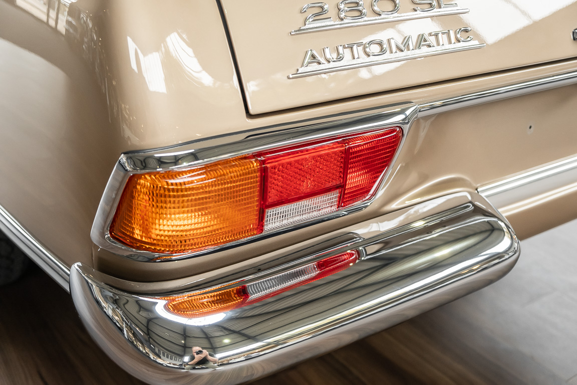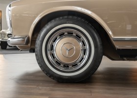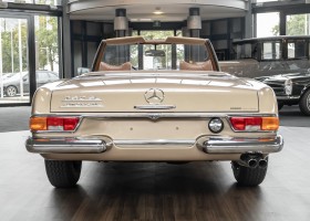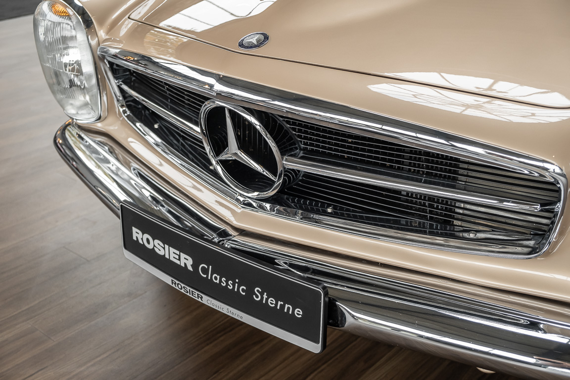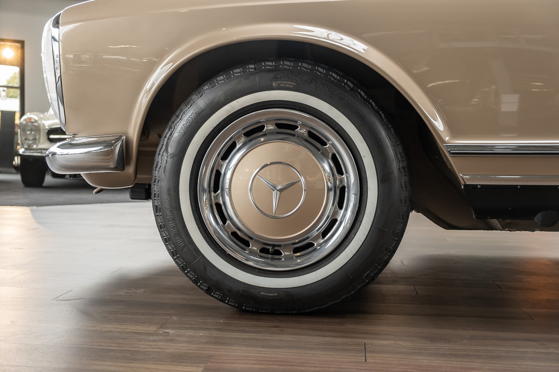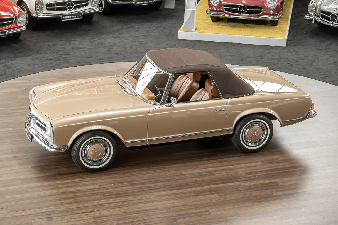 The offered Mercedes-Benz 280SL Pagoda was completed in 1969 in the Mercedes factory and delivered to the USA. The elegant color scheme in Sand Beige Metallic in combination with cognac-colored interior emphasized the elegant appearance to a very special extent even at that time. In March 1972, the car was sold by its first owner to London, Great Britain. It came into the possession of a diplomat's family who lived next to Primrose Hill not far from the wonderfully beautiful Regent's Park, in an elegant area of London. Presumably it was the lady of the house who used the car in London and in Geneva, Switzerland. After about 30 years of ownership, the family decided to sell the Pagoda. So in February 2001, a Swiss restaurateur from picturesque Fribourg in western Switzerland took over the Pagoda. During his ownership, a factory exchange engine was installed at an authorized Mercedes-Benz partner in July 2001. The original invoice for just under CHF 30,000 is available. In 2003 the car was acquired by a German manufacturer for his collection. He had the Pagoda professionally overhauled where necessary and restored it to its current dream condition. After almost 20 years in collector's possession and care, the chic roadster is to get a new home. Take your chance on a solid vehicle, with a great traceable history. We are happy to advise you.