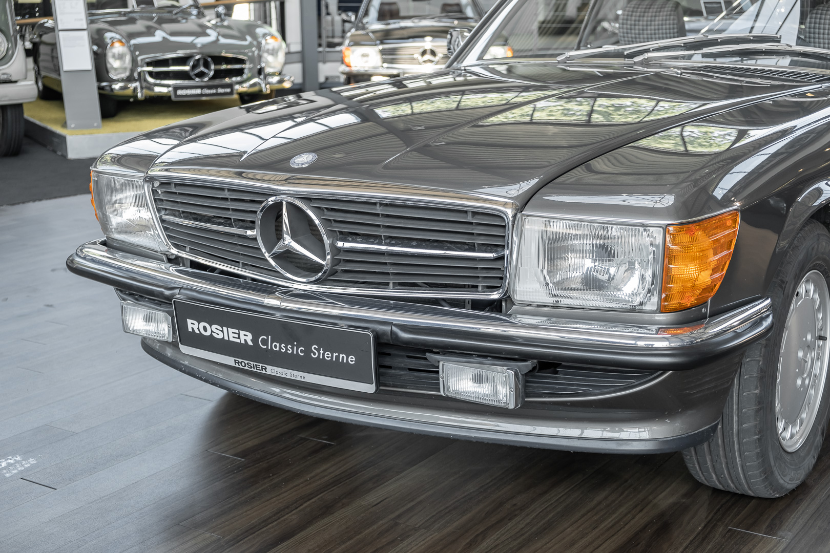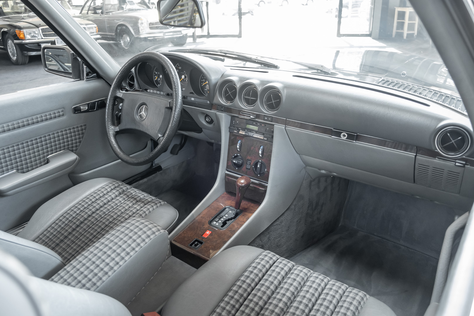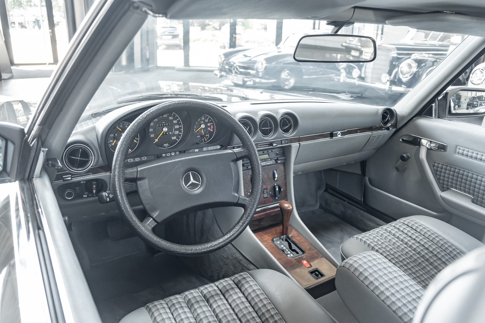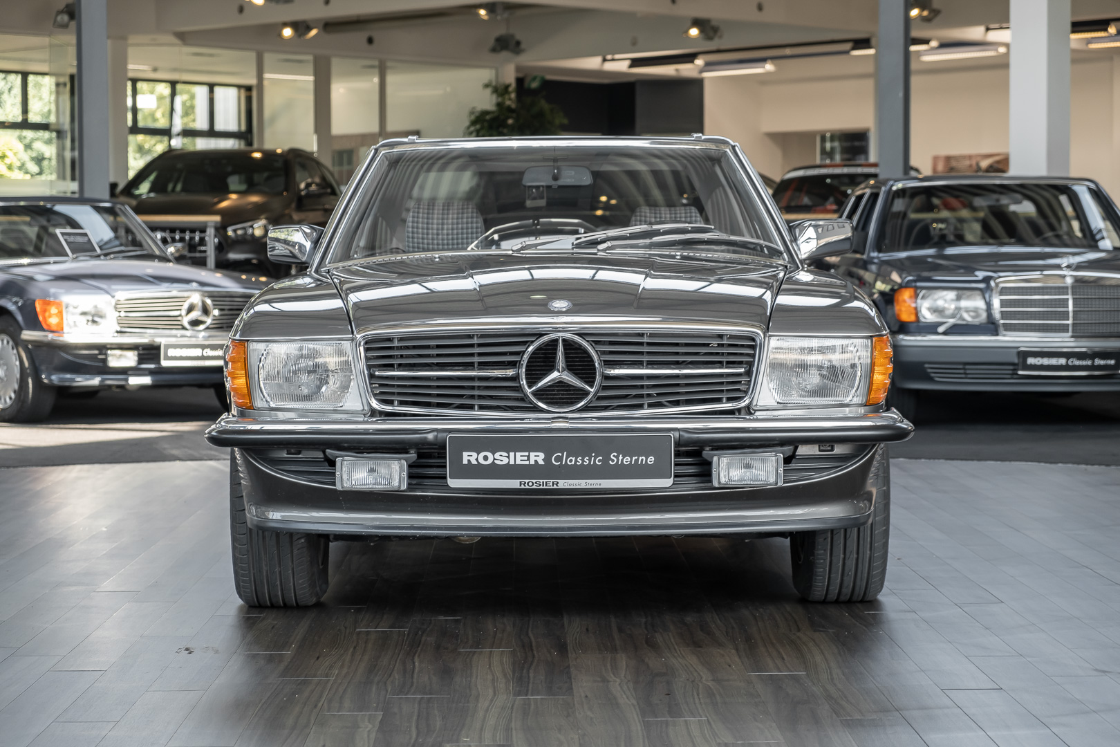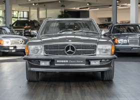 New in the showroom: 300 SL of the 107 model series in anthracite gray metallic in perfect combination with gray check fabric seats. With a mileage of only 41,000 km and a well-maintained Mercedes service booklet this 300 SL presents itself in top condition without exception. The vehicle is currently being reconditioned, further information will follow.