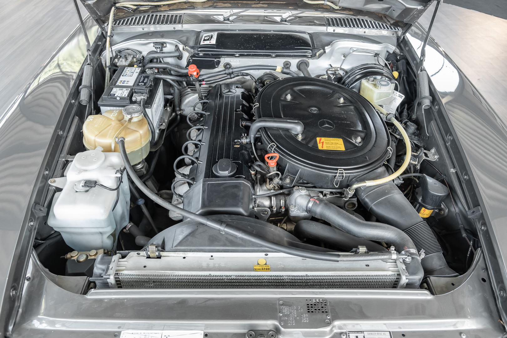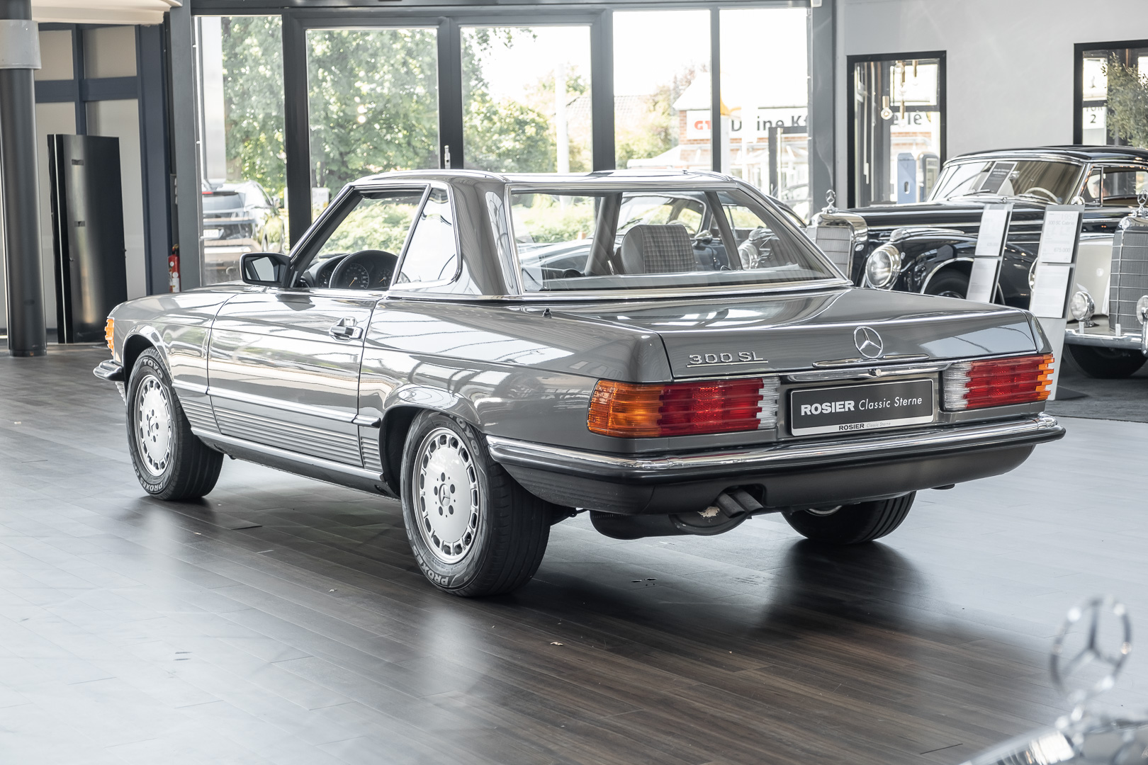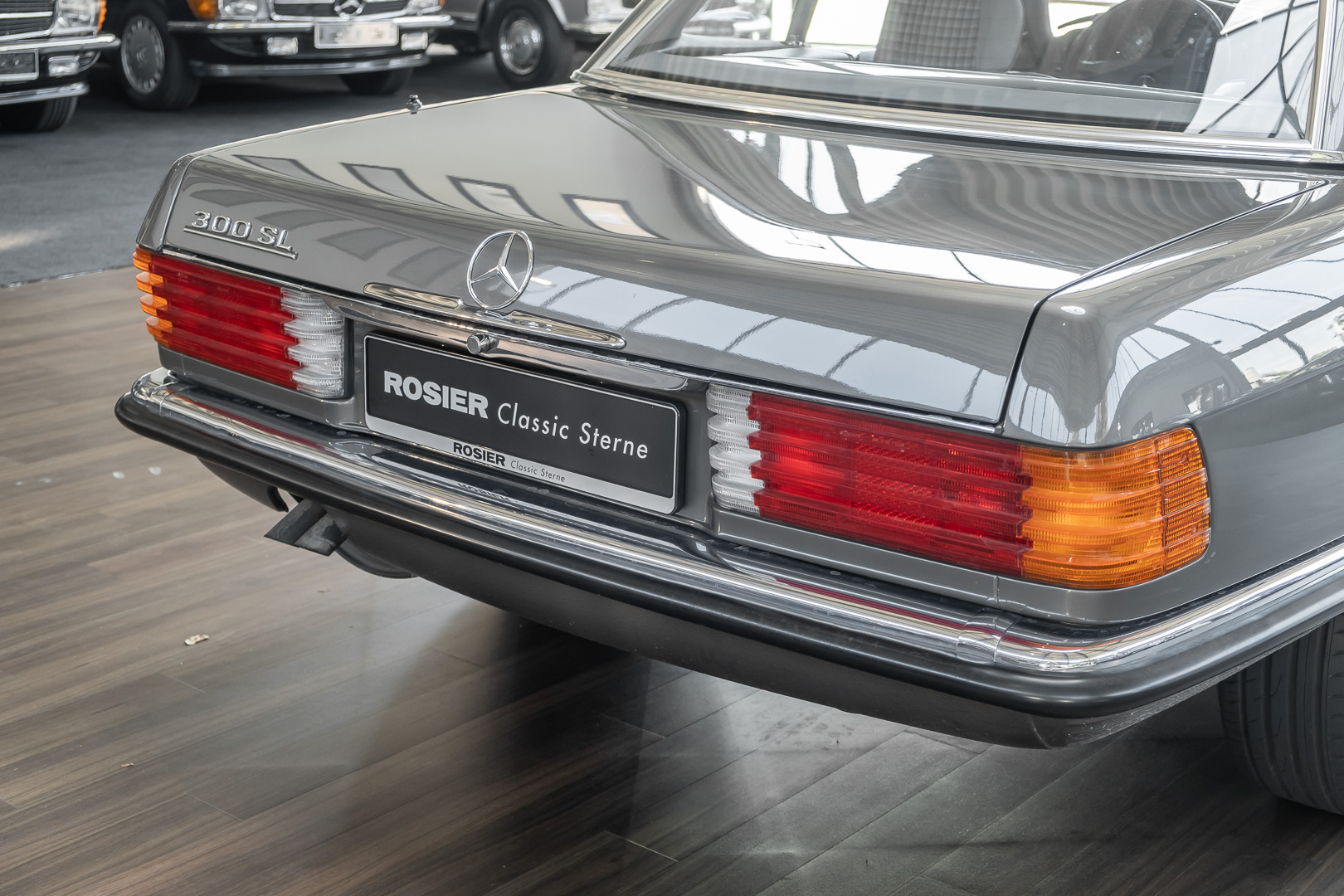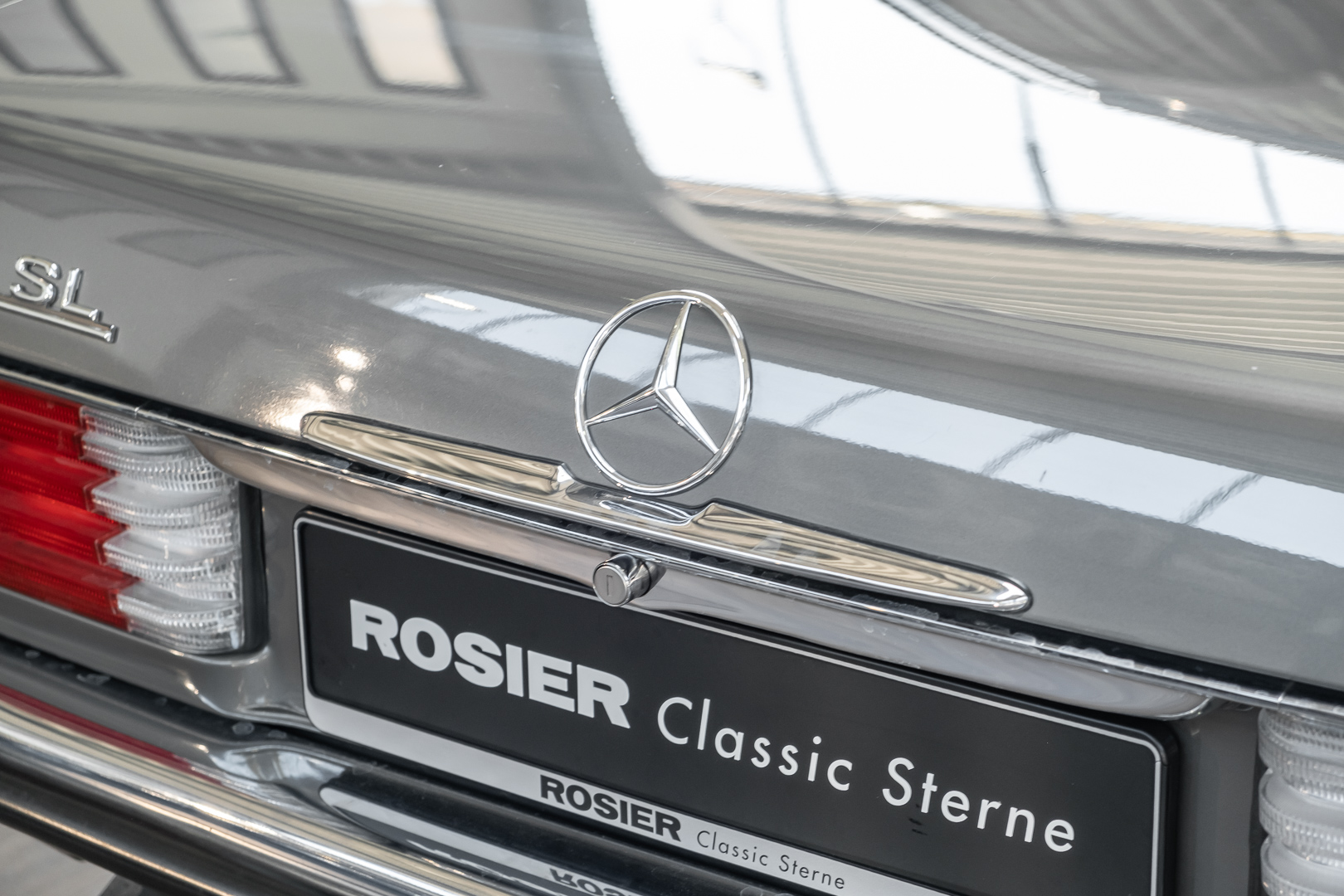 New in the showroom: 300 SL of the 107 model series in anthracite gray metallic in perfect combination with gray check fabric seats. With a mileage of only 41,000 km and a well-maintained Mercedes service booklet this 300 SL presents itself in top condition without exception. The vehicle is currently being reconditioned, further information will follow.
