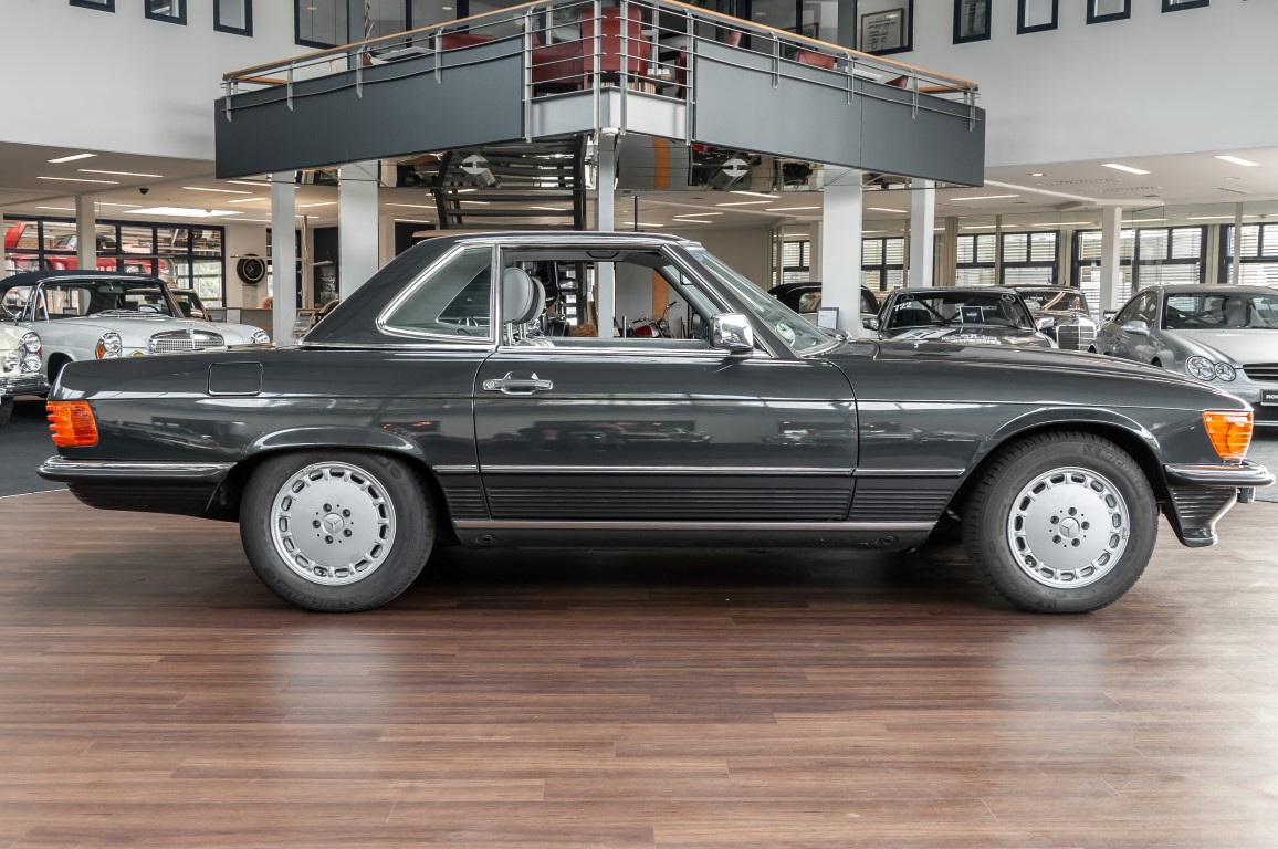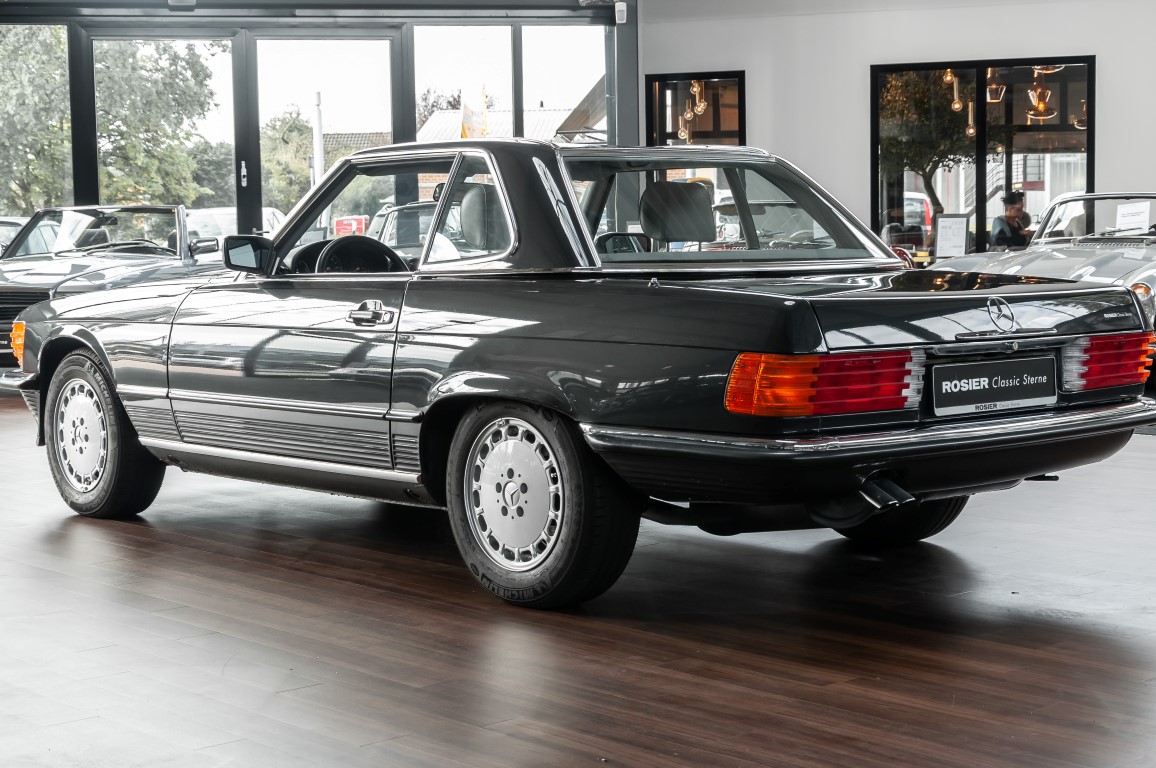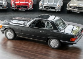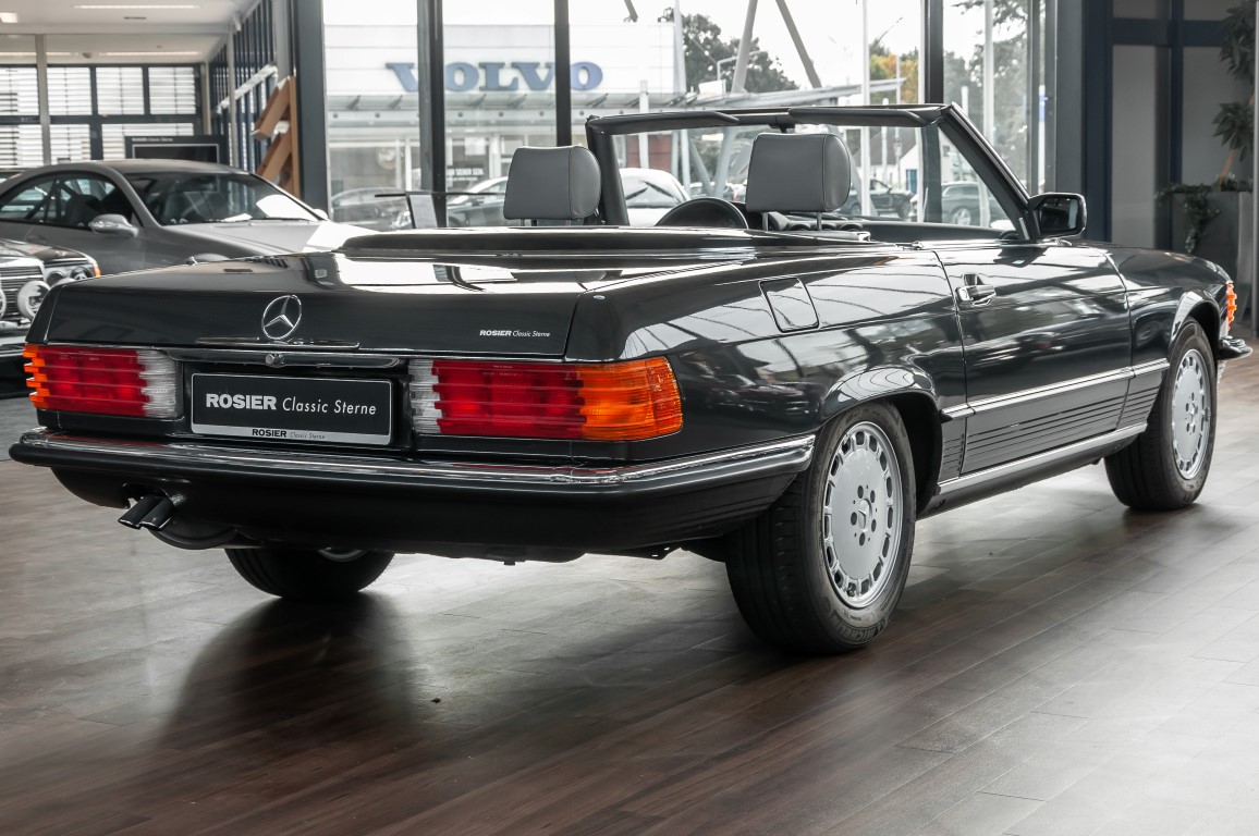 Only about 6 % of all 107 series roadsters built were the 300 SL in the model-maintained version that was available from August 1985 to June 1989 - 13,742 vehicles to be exact. Today, they are the most popular variant of this type, which knows how to convince with a classic appearance and yet combines comfort and safety aspects of modern vehicles. This as-new example has covered an astonishing 15,550 km in 30 years. With three previous owners (one a long-time first owner, since then in collector's hand) a vehicle in such a condition might be hard to find. The zetilose appearance in blue-black metallic in combination with leather in alpaca grey is guaranteed with this style icon. The new owner now has the choice: rather drive and enjoy or collect and preserve - both are possible. The SL receives a customer service, new TÜV and one year warranty. Experience this SL icon! Welcome to your certified Mercedes-Benz ClassicPartner ROSIER Classic Sterne.