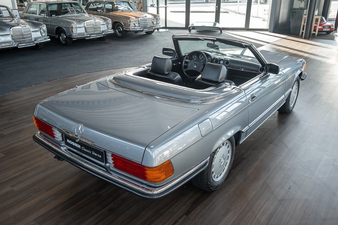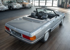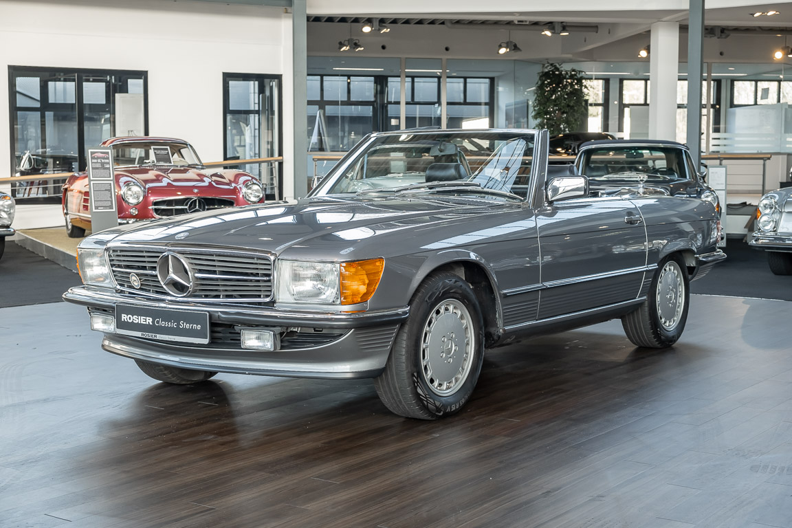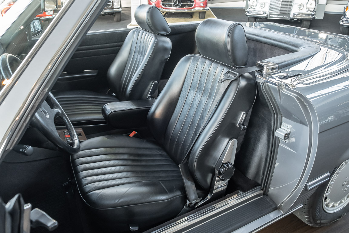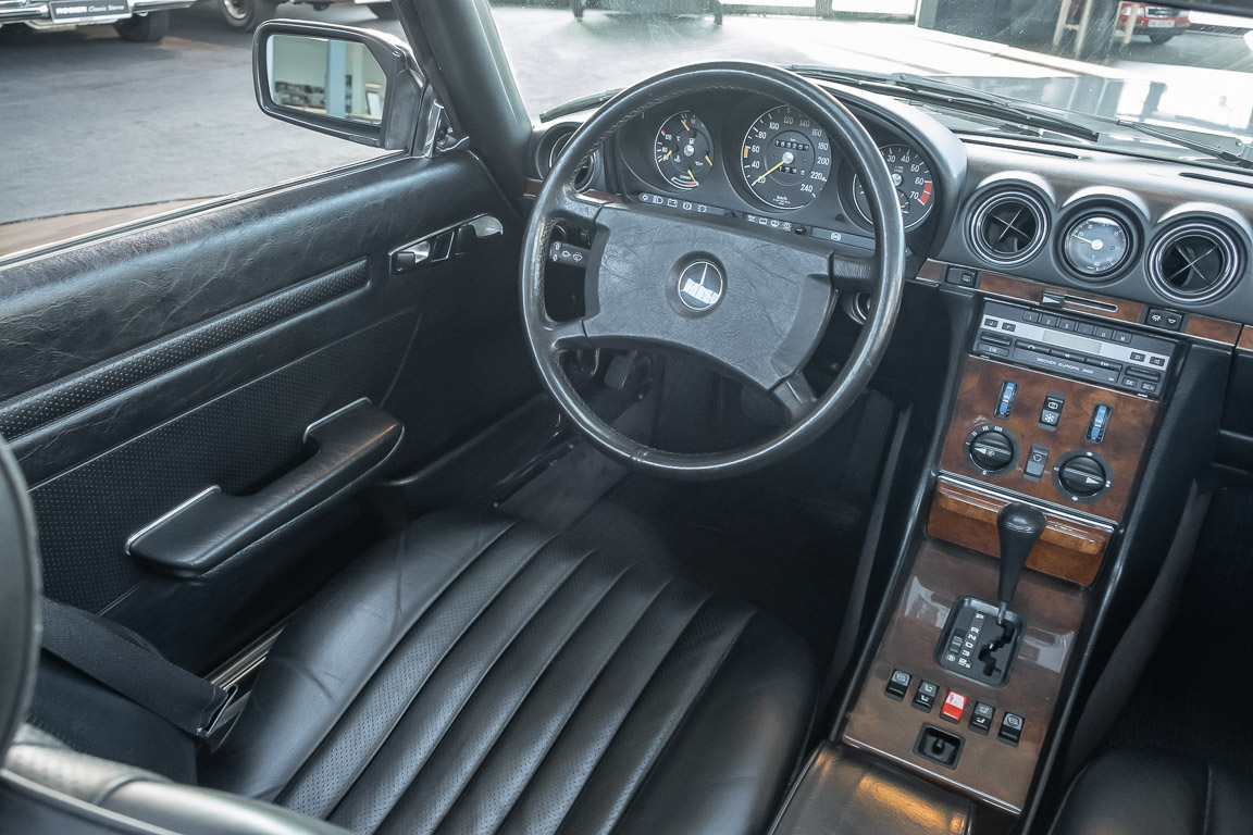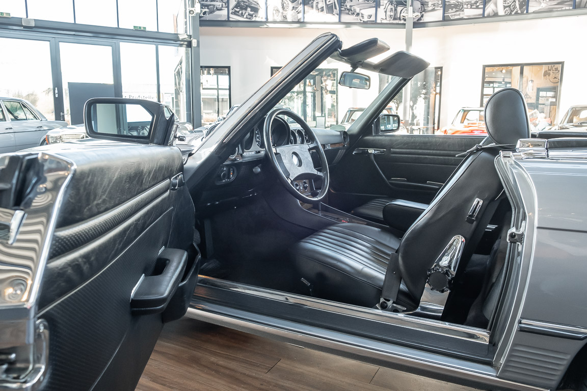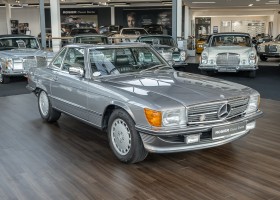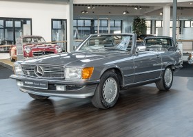 We are proud to offer you a wonderful roadster from the 107 series in the form of this 500 SL - the top SL model of the time. Skilfully this specimen in the color pearl gray metallic stands out from its brothers and sisters in silver and blue-black. In combination with the black leather this 500 knows to set itself discreetly but skillfully in scene. With a quite worth seeing equipment with limited slip differential, air conditioning and seat heating for driver and front passenger hardly desires remained open for the buyers at that time. With just over 160,000 kilometers the vehicle presents itself technically and optically in a remarkably maintained condition. The vehicle has been thoroughly checked and optimized by specialists in our workshop and has undergone major maintenance to make it fit for the upcoming season. Get in and experience the legendary SL-Class in the top model 500 SL.