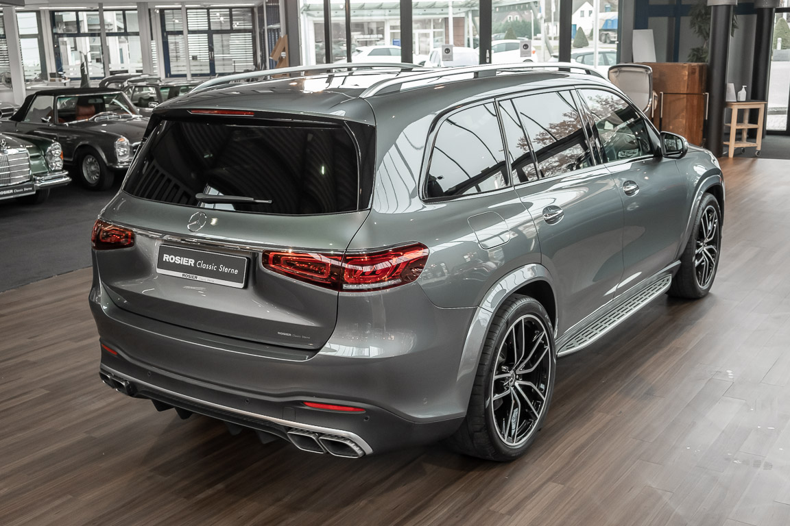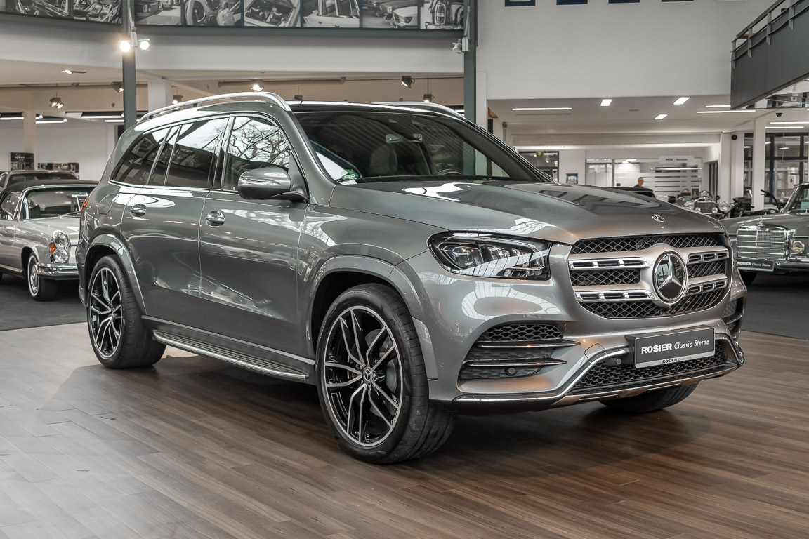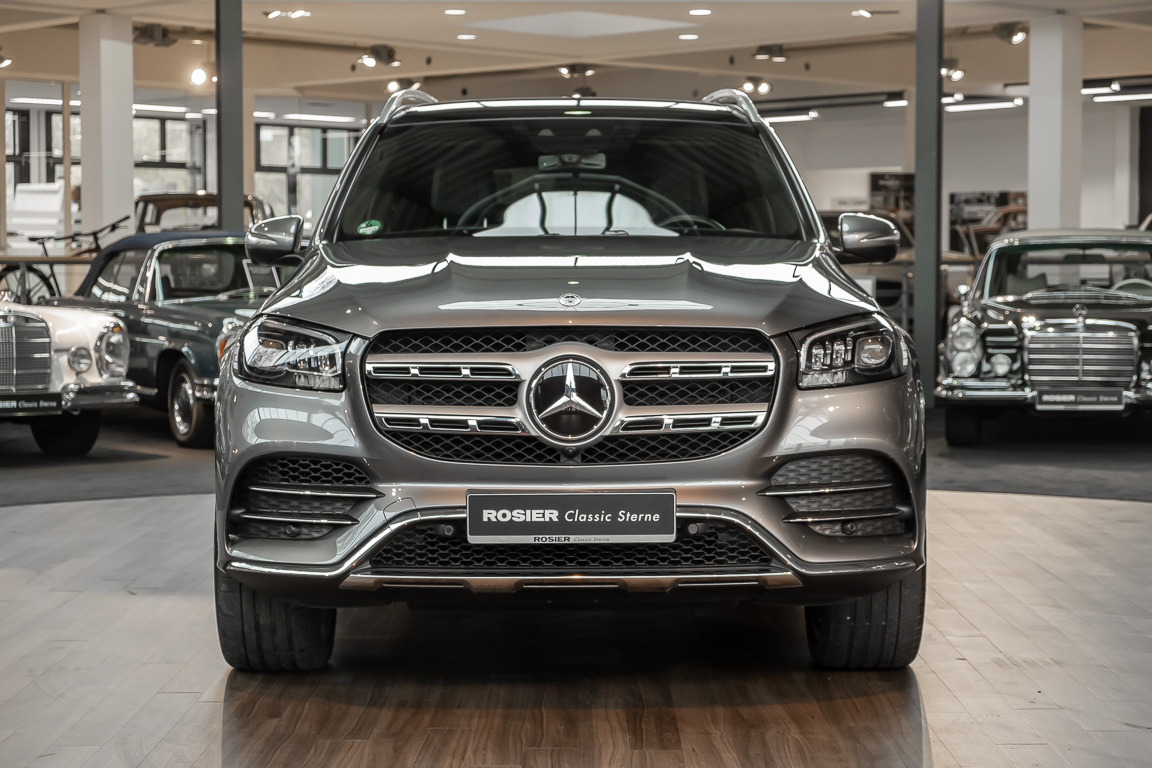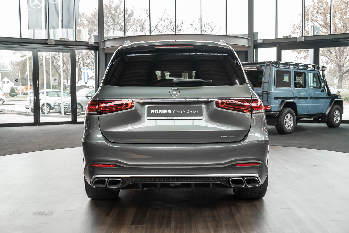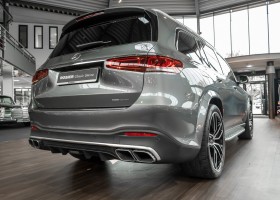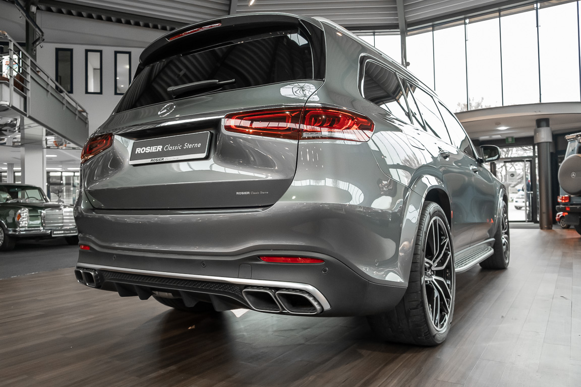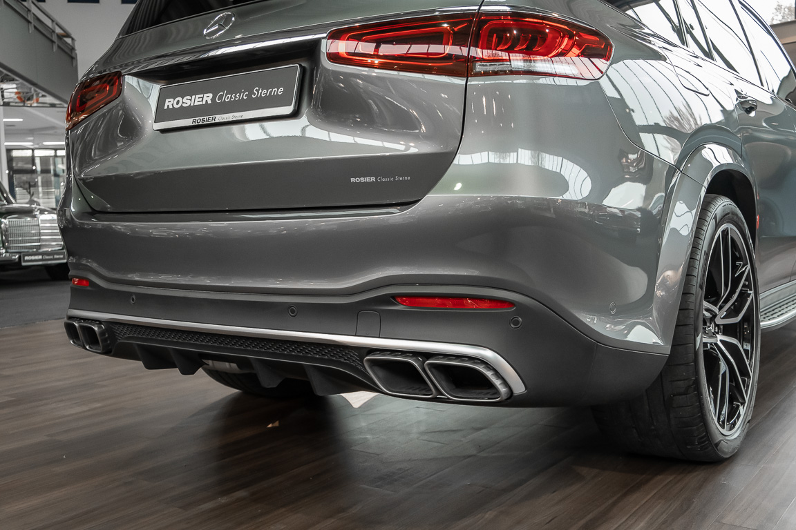 Mercedes-Benz GLS 400 d in selenite gray metallic from 1st hand in top condition and fully equipped. Accident free and repaint free. Individualized with 23 "AMG rims and GLS 63 rear diffuser with exhaust trims.