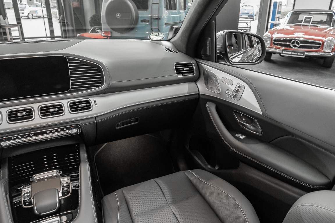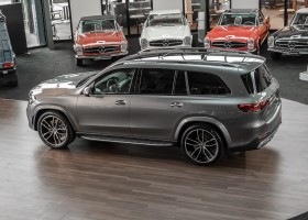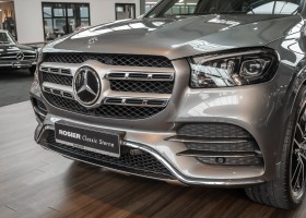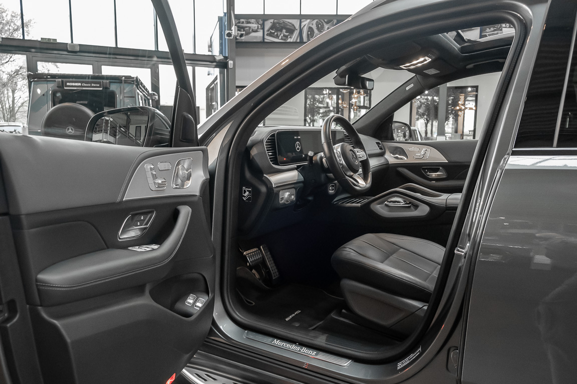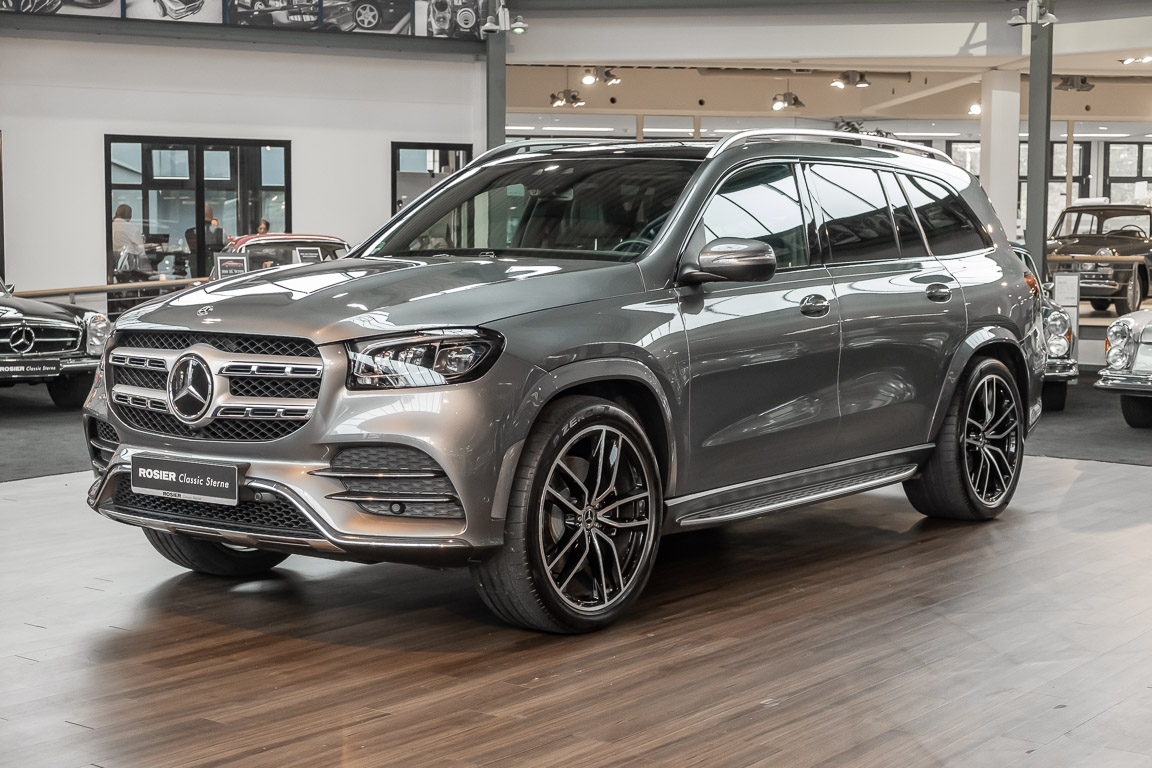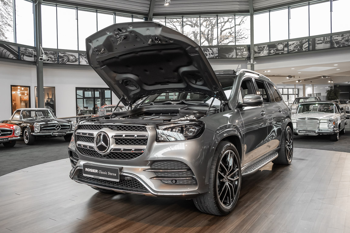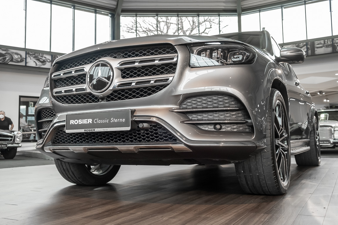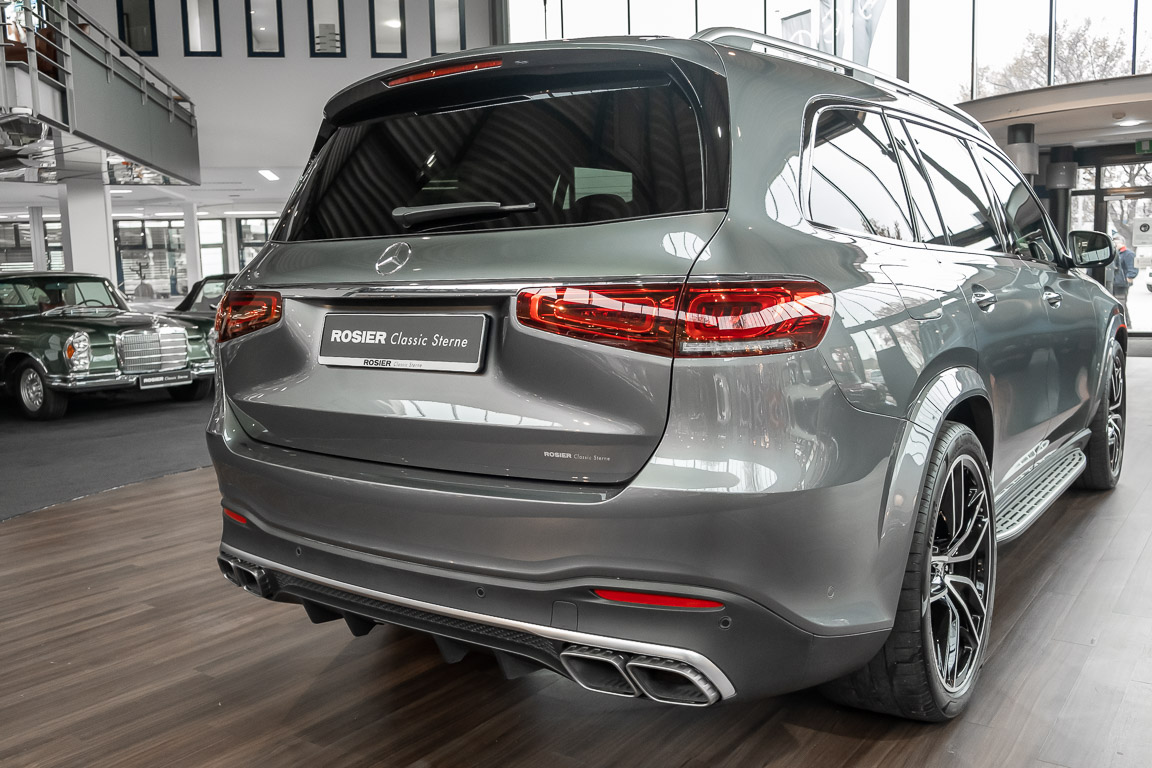 Mercedes-Benz GLS 400 d in selenite gray metallic from 1st hand in top condition and fully equipped. Accident free and repaint free. Individualized with 23 "AMG rims and GLS 63 rear diffuser with exhaust trims.