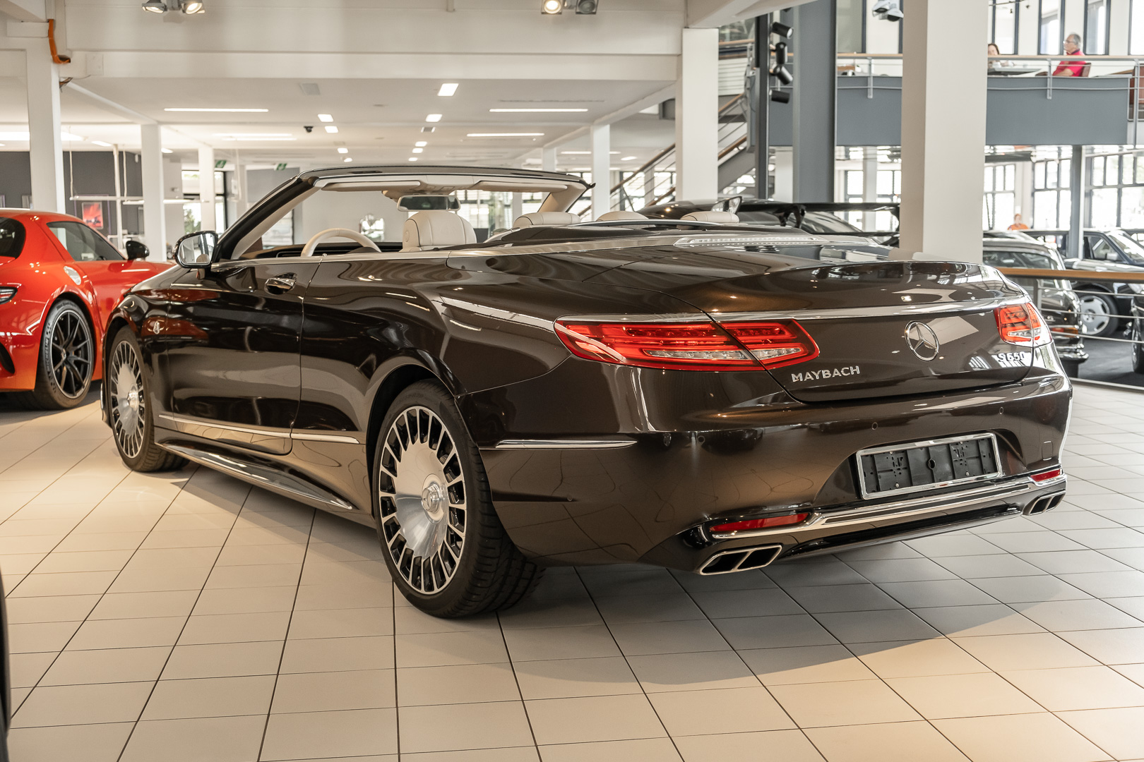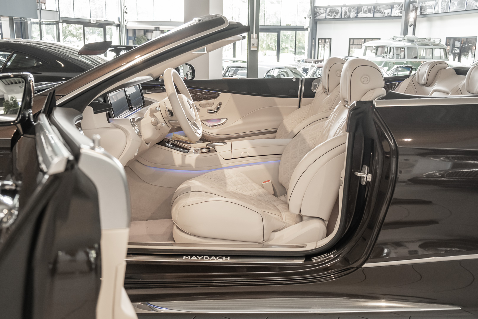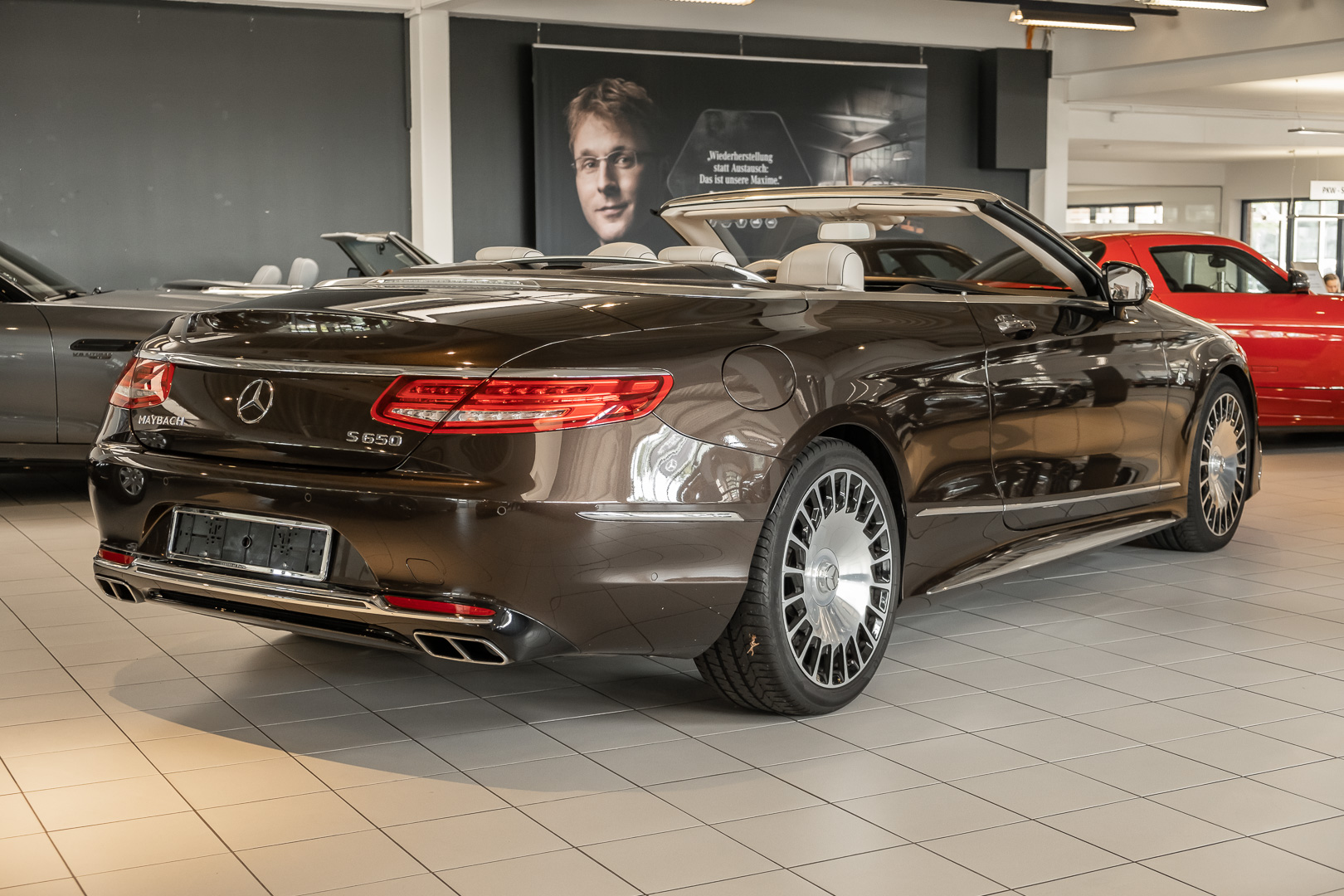 New in the showroom: Mercedes-Benz S650 Maybach Cabrio in the sensational color Rocks Mountain Dark Brown Metallic in combination with beige Exclusive leather.German, accident and repaint-free second-hand vehicle.Full service history incl. Maybach bag set. New price approx. 360,000 €. The vehicle is currently being reconditioned. Further pictures and information will follow.