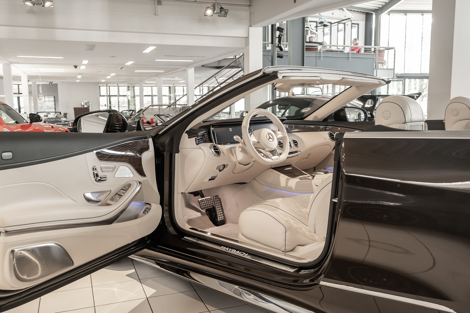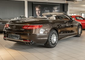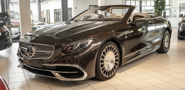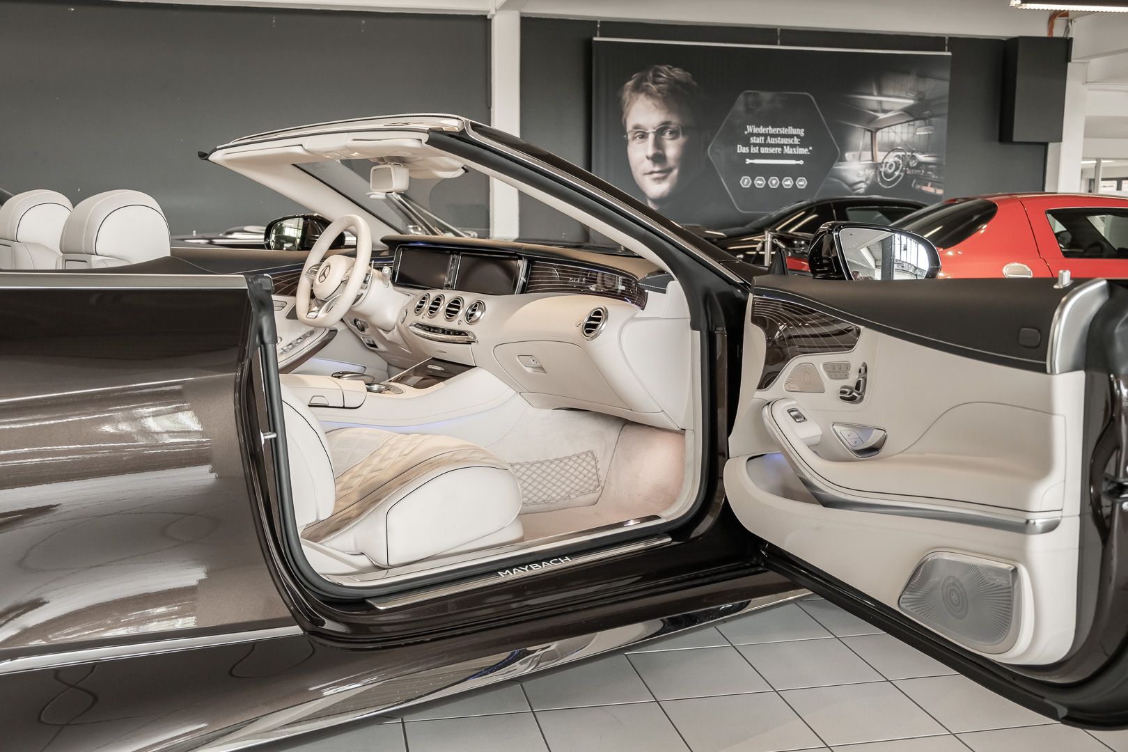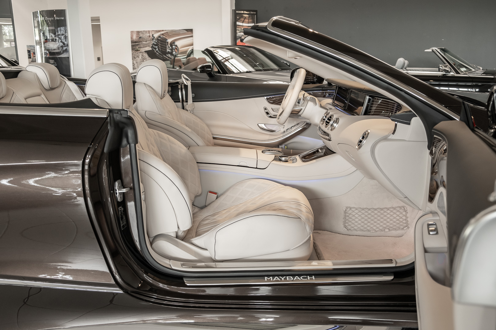 New in the showroom: Mercedes-Benz S650 Maybach Cabrio in the sensational color Rocks Mountain Dark Brown Metallic in combination with beige Exclusive leather.German, accident and repaint-free second-hand vehicle.Full service history incl. Maybach bag set. New price approx. 360,000 €. The vehicle is currently being reconditioned. Further pictures and information will follow.