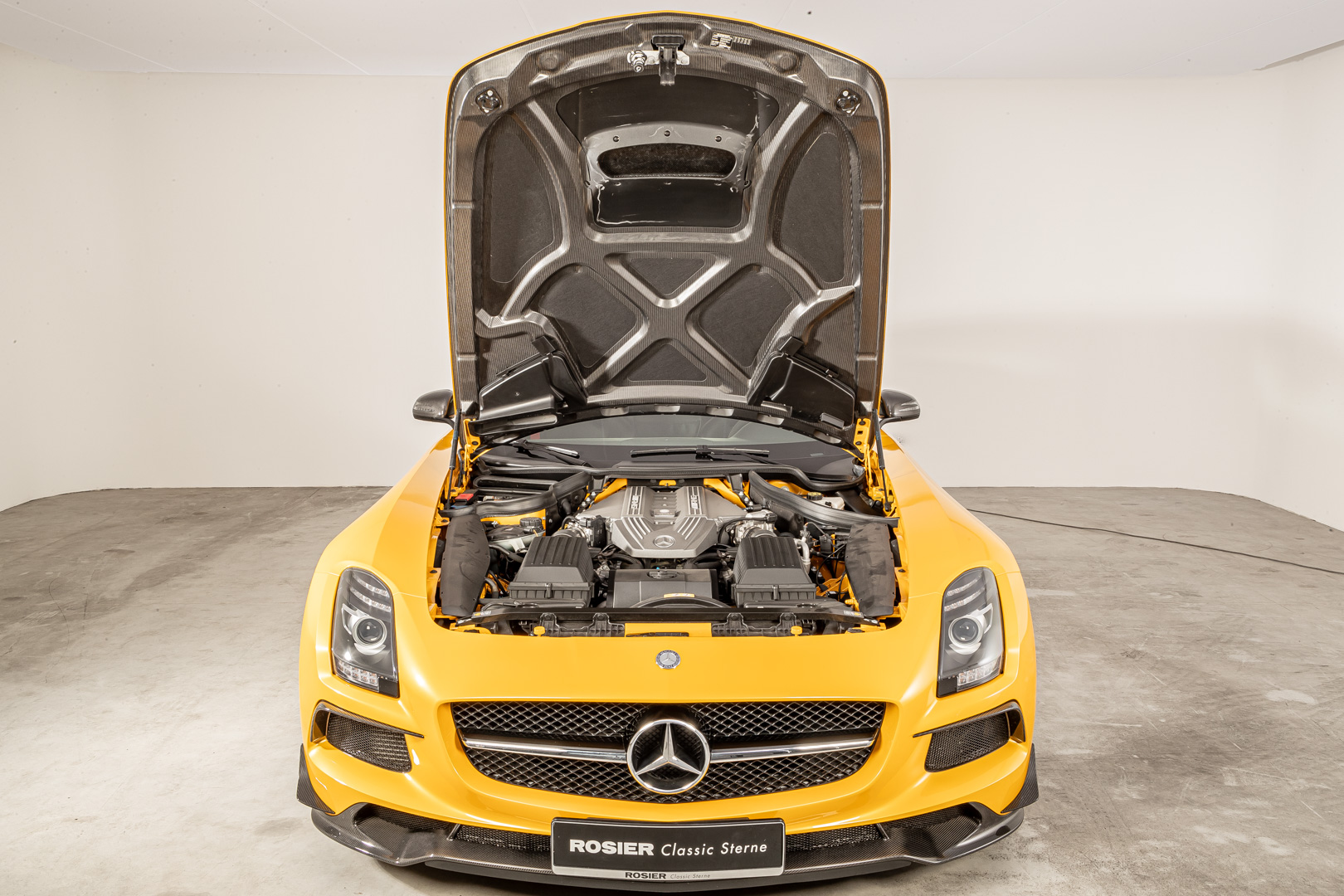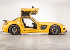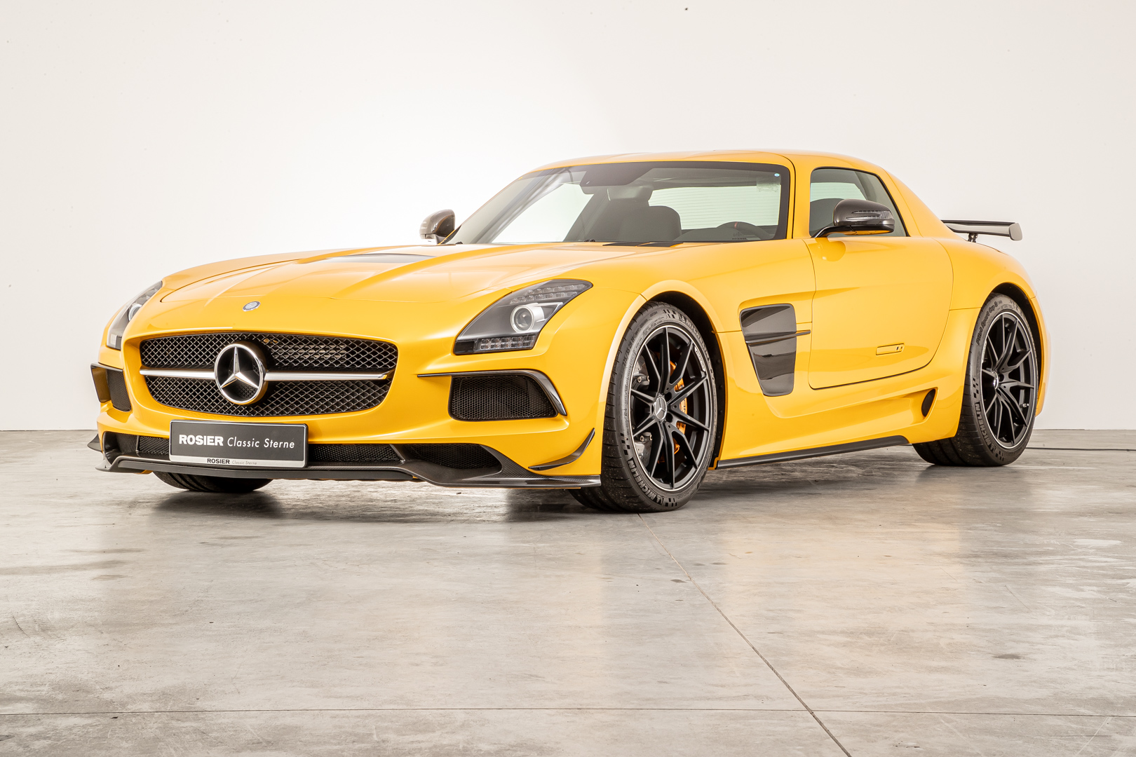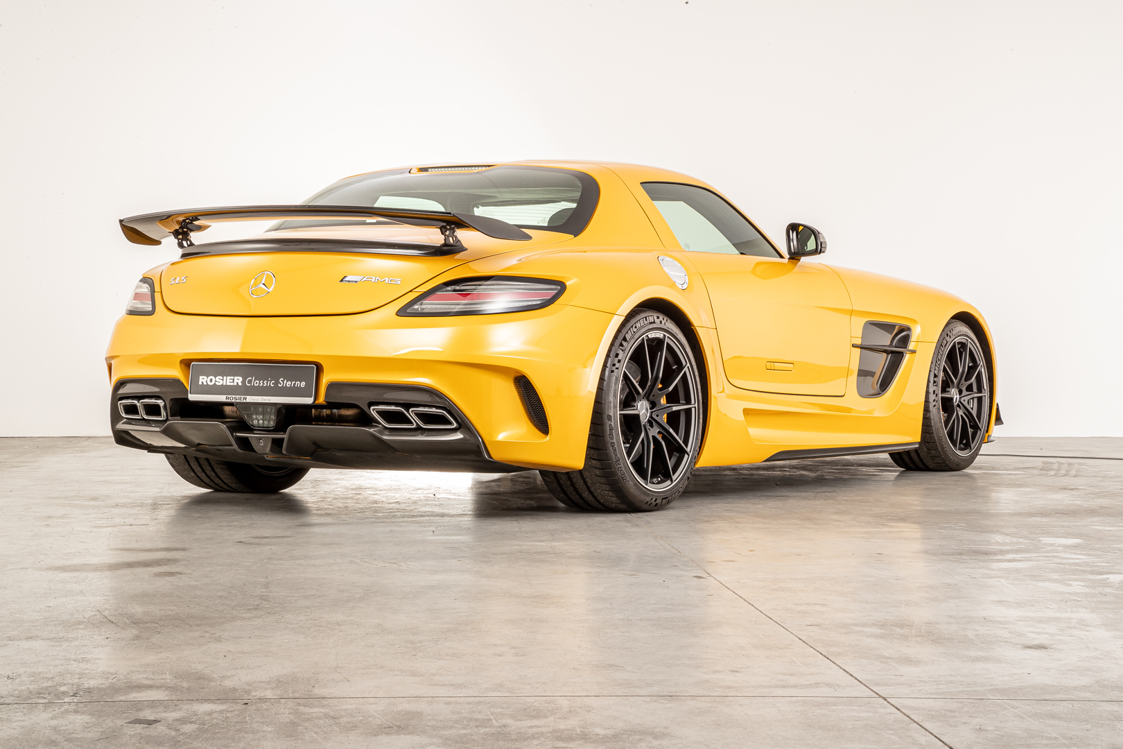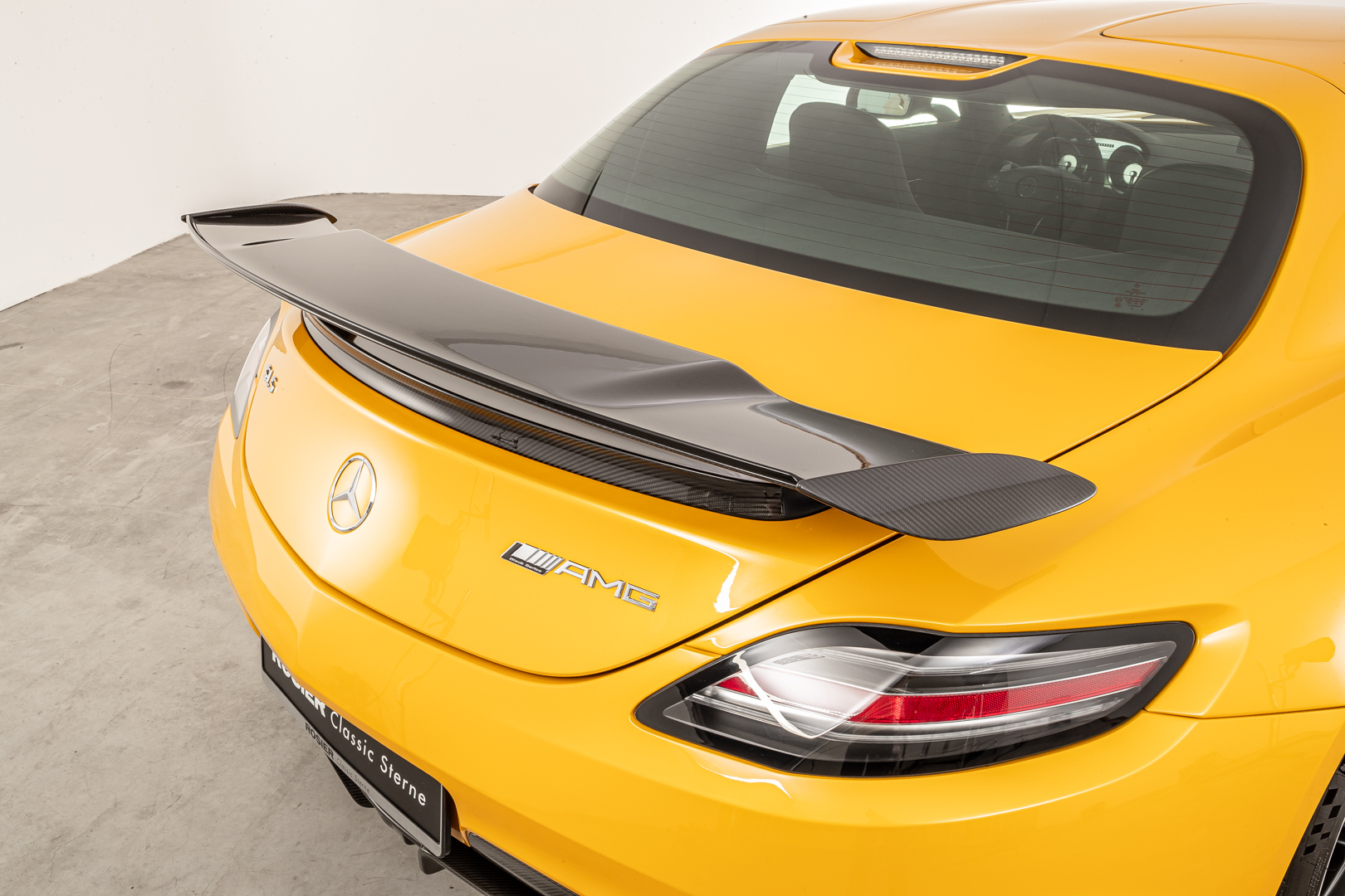 We are pleased to offer you this Black Series rarity. In the sensational AMG special color "AMG Solarbeam Metallic", this SLS Black Series makes a powerful impression even when stationary. At the latest when starting the 6.3-liter naturally aspirated engine, the full splendor of this exceptional athlete from the house of AMG is revealed. Experience pure goose bumps with this well-kept exceptional specimen. As part of an Italian collection in the metropolis of Bologna, this bolide "made in Germany" certainly caused many envious glances, even among the sports car spoiled Italians. Subsequently, the vehicle ended up in German collector's hands and delighted its total of 3 previous owners.