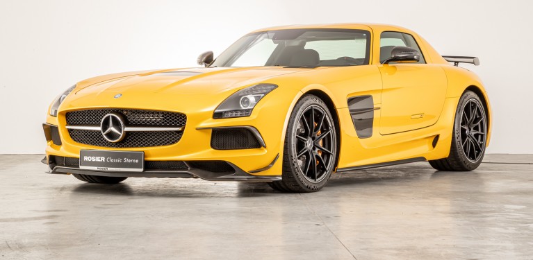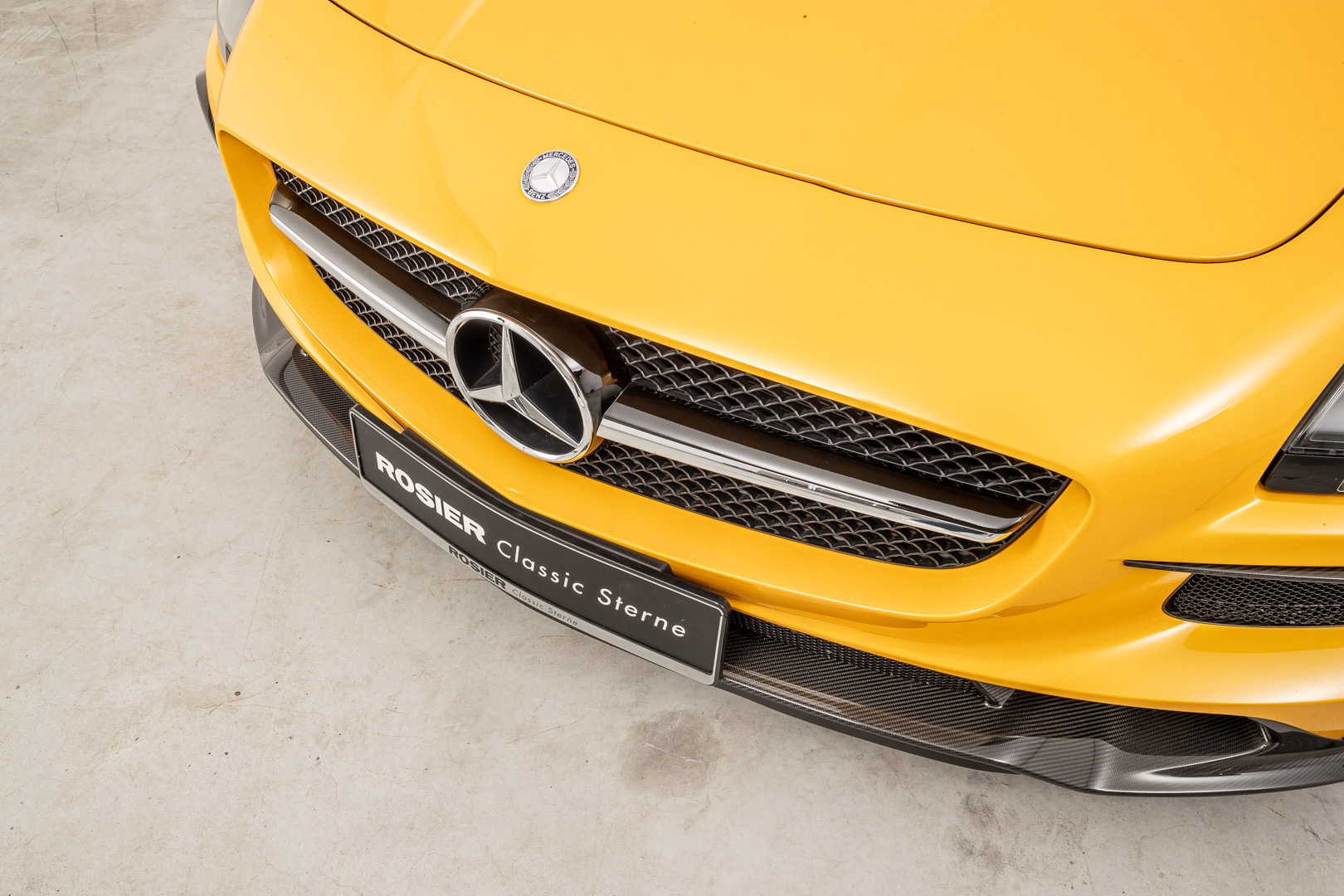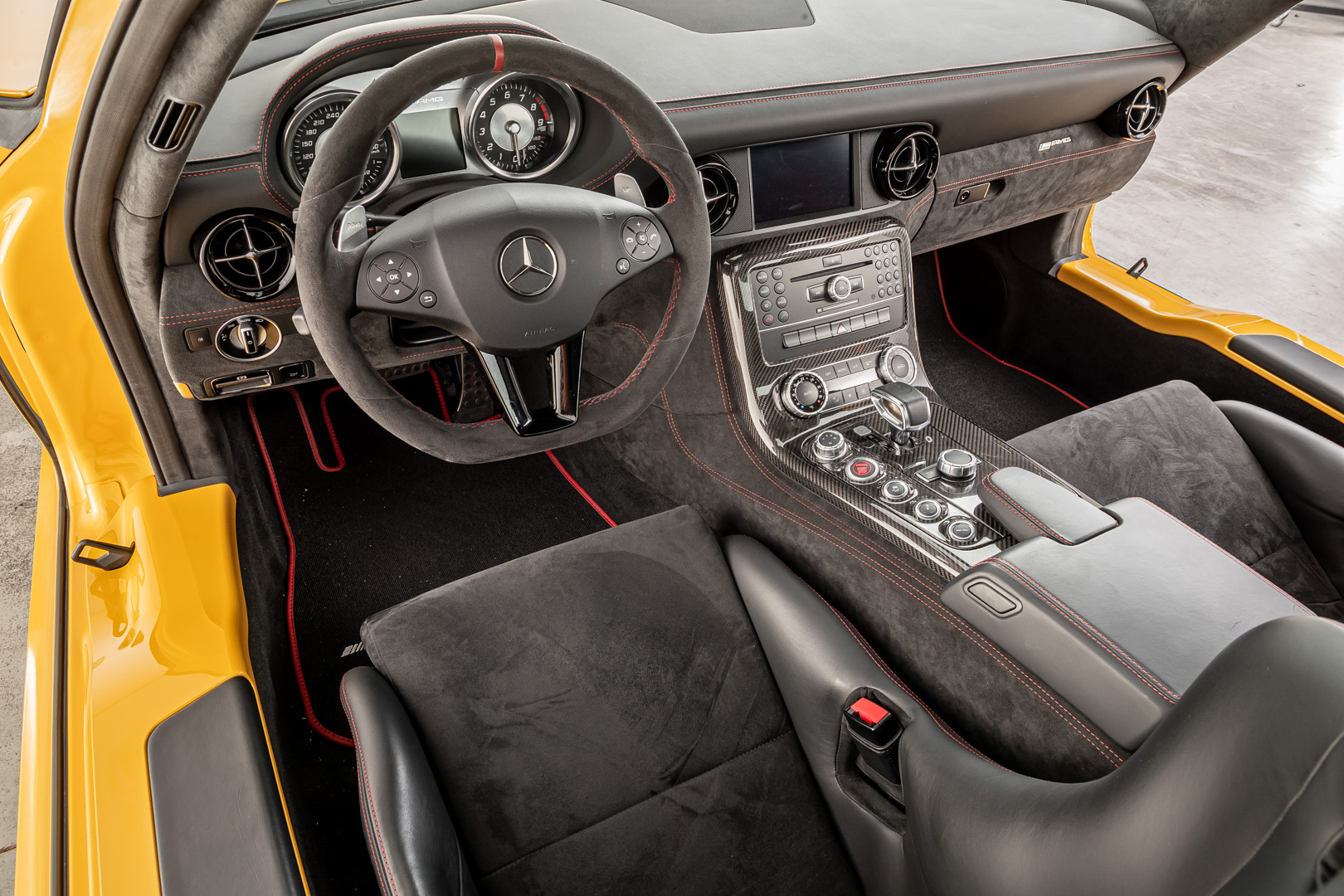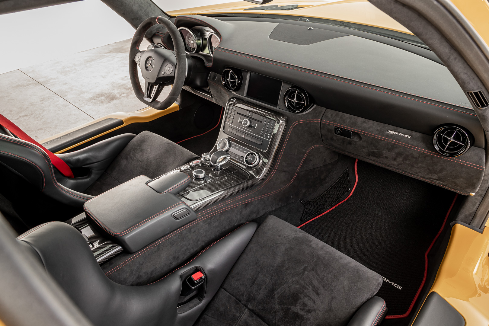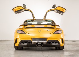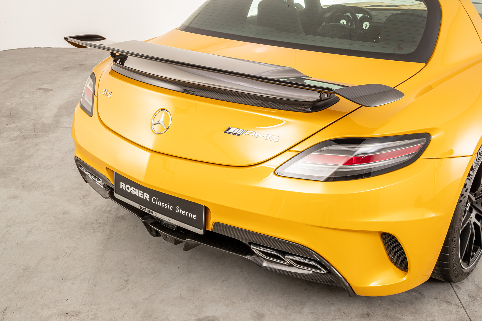 We are pleased to offer you this Black Series rarity. In the sensational AMG special color "AMG Solarbeam Metallic", this SLS Black Series makes a powerful impression even when stationary. At the latest when starting the 6.3-liter naturally aspirated engine, the full splendor of this exceptional athlete from the house of AMG is revealed. Experience pure goose bumps with this well-kept exceptional specimen. As part of an Italian collection in the metropolis of Bologna, this bolide "made in Germany" certainly caused many envious glances, even among the sports car spoiled Italians. Subsequently, the vehicle ended up in German collector's hands and delighted its total of 3 previous owners.