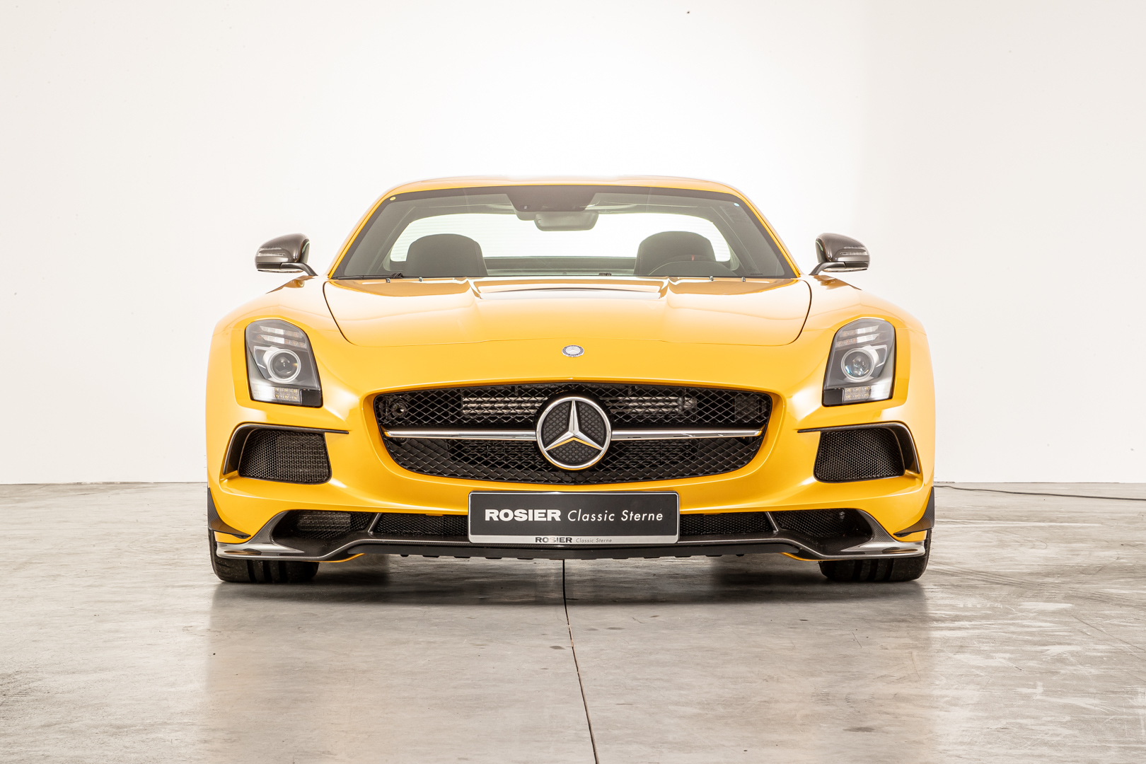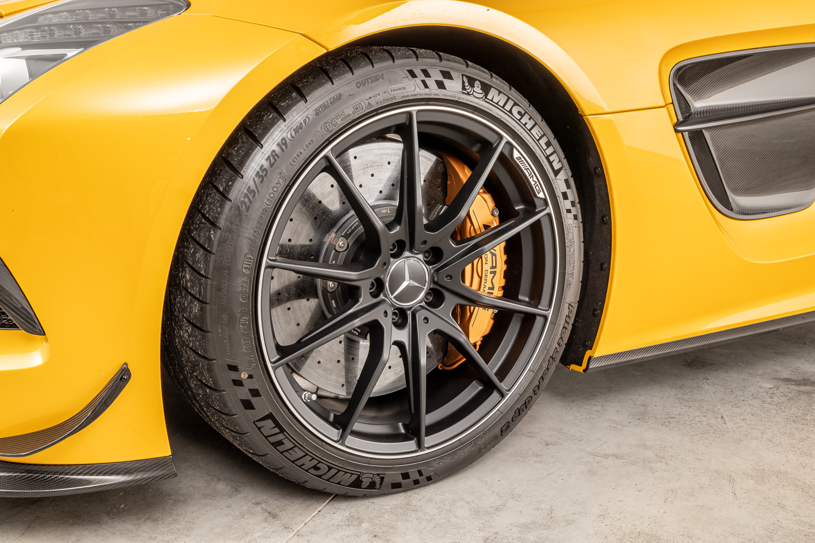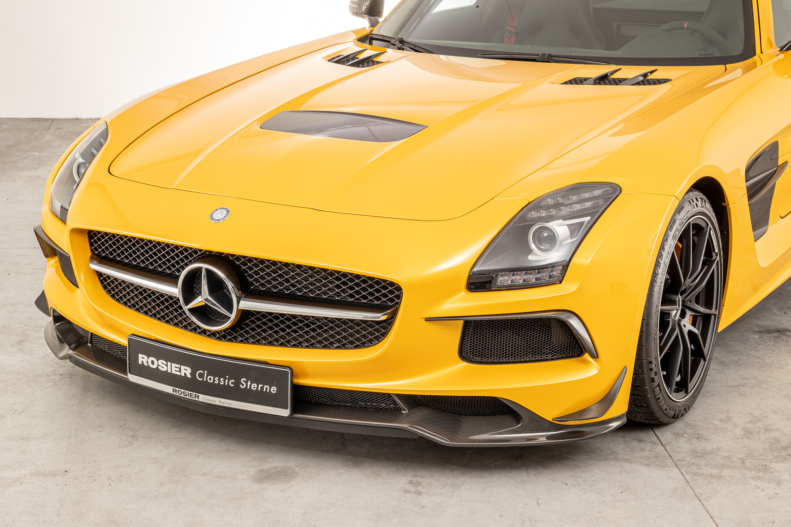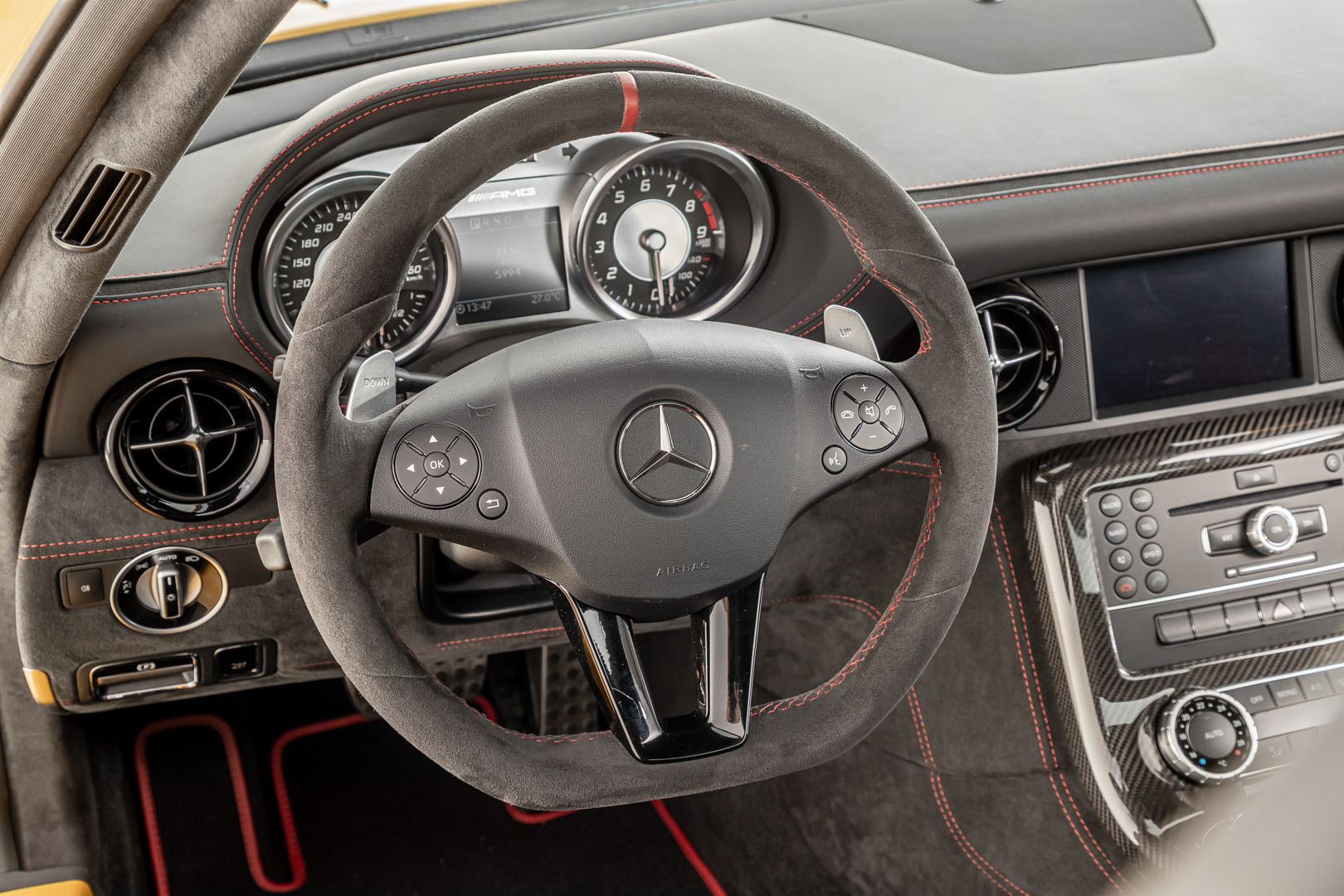 We are pleased to offer you this Black Series rarity. In the sensational AMG special color "AMG Solarbeam Metallic", this SLS Black Series makes a powerful impression even when stationary. At the latest when starting the 6.3-liter naturally aspirated engine, the full splendor of this exceptional athlete from the house of AMG is revealed. Experience pure goose bumps with this well-kept exceptional specimen. As part of an Italian collection in the metropolis of Bologna, this bolide "made in Germany" certainly caused many envious glances, even among the sports car spoiled Italians. Subsequently, the vehicle ended up in German collector's hands and delighted its total of 3 previous owners.