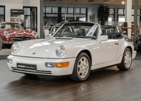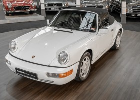 We are pleased to offer you this wonderful 964 Porsche Cabrio. Very special is certainly the dreamlike condition of this 1991 Cabriolet, which you do not notice the mileage of 59,885 miles in the slightest. Very special, however, is the story behind this white Carrera Cabrio. Whitney Houston, the world-famous singer and actress, ordered this vehicle from the Porsche dealer she trusted on April 26, 1991. With more than 200 million records sold and over 200 gold, platinum, silver and diamond records, as well as six Grammys, she is one of the world's most successful singers! In 1992, shortly after the purchase of this vehicle, she reached the peak of her popularity through her acting debut in the lead role of the movie Bodyguard as well as through the soundtrack "The Bodyguard", which was largely sung by her. We offer you a rare opportunity to experience a piece of musical history.
