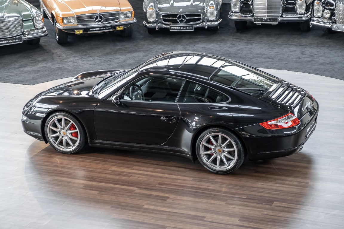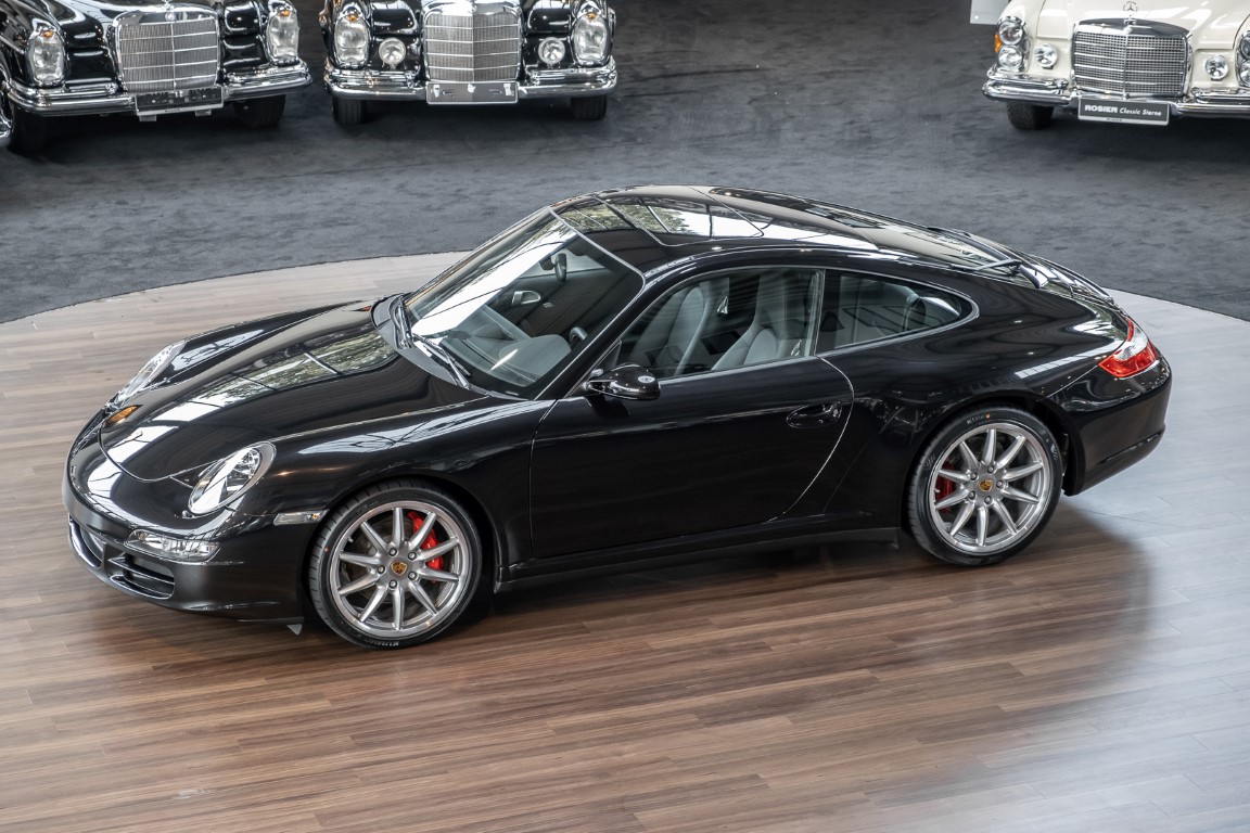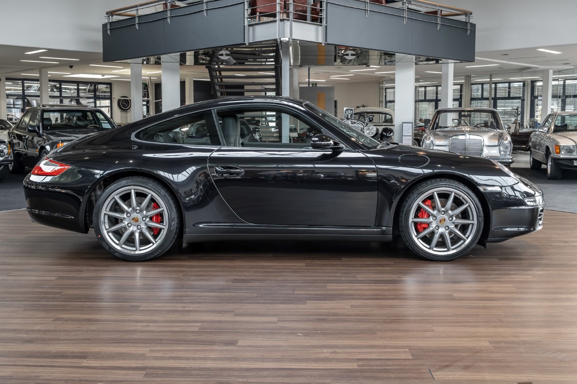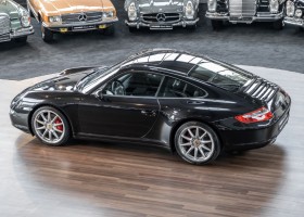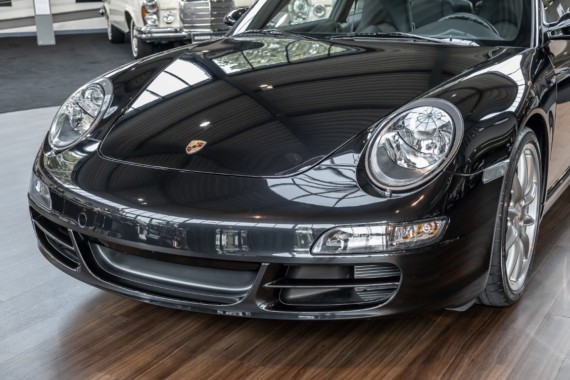 We are pleased to offer you this very special Porsche 911 Carrera 4S of the 997 series. This dream coupé in the popular color Basalt Black Metallic was built in 2007 and is in absolutely new condition. No wonder, because with only 60 km on the speedometer this is by no means an empty phrase, but a REAL rarity. After its completion in 2007, the vehicle made its way into the halls of a Brazilian collector, who preferred to look at the noble sports coupé rather than drive it. Afterwards, the sought-after vehicle found its way back to Germany. Its new owner recognized the chance to preserve the new car character and presented the vehicle again as part of a collection. He gave the timeless gem a German registration and a fresh service so that its future owners would also enjoy it. No matter whether as part of a collection or as a cornering robber on the country road. It is up to you.