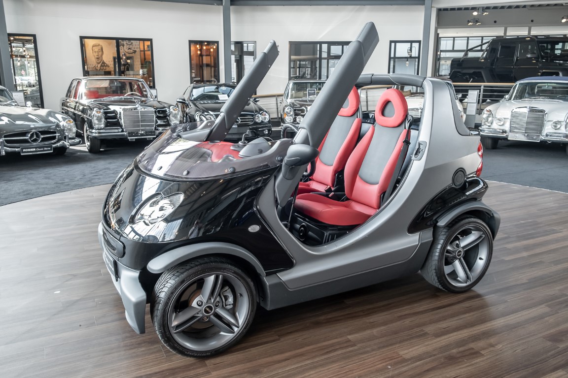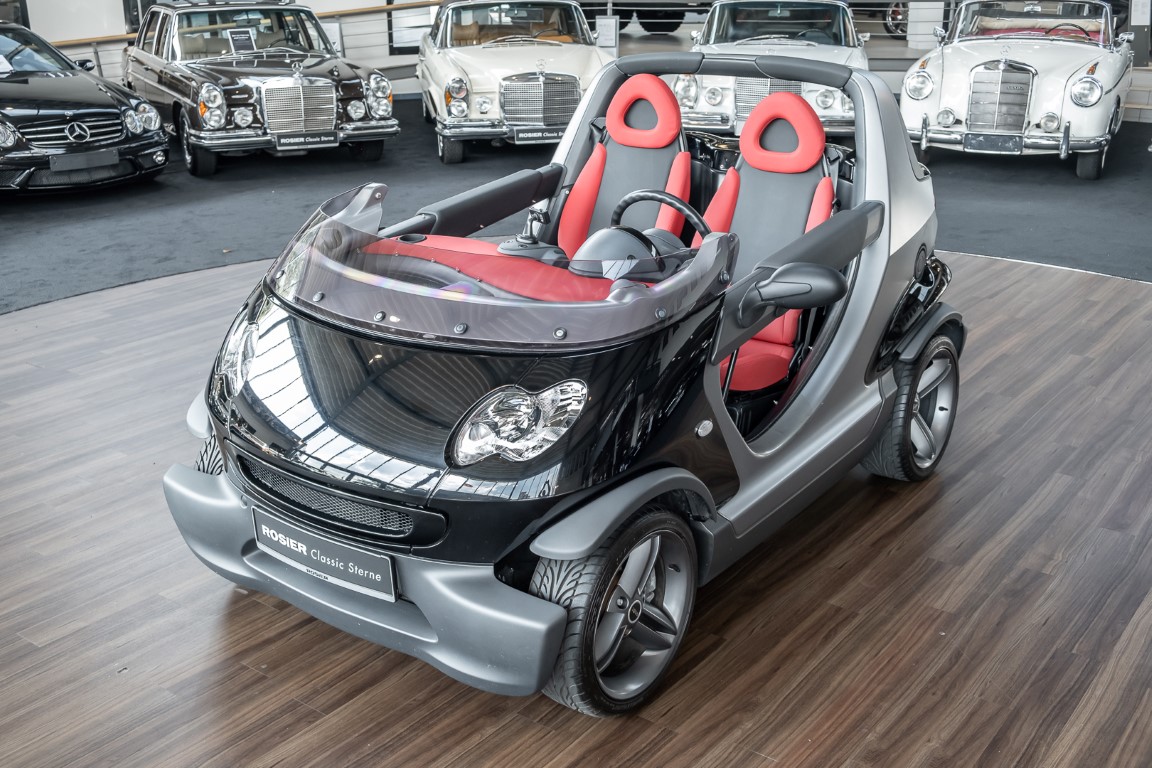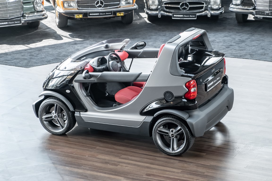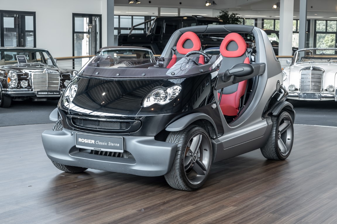 Finally, the vehicle was moved to the beautiful island of Sylt, where it certainly made a special appearance. As a sign for the exclusively manufactured quantity, each Smart Crossblade is decorated with a consecutively numbered metal sign. You can now purchase the number 1234. By the way, anyone who wanted to attract attention with this open-topped speedster back then had to spend a proud 24,360 euros. Get in, stand out and have fun.