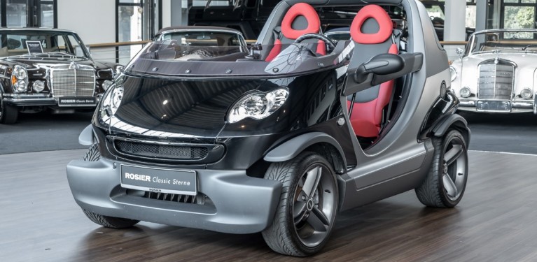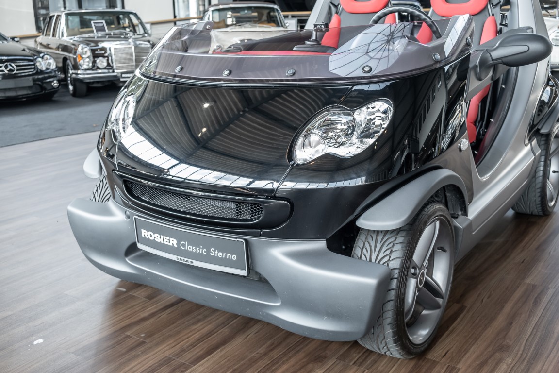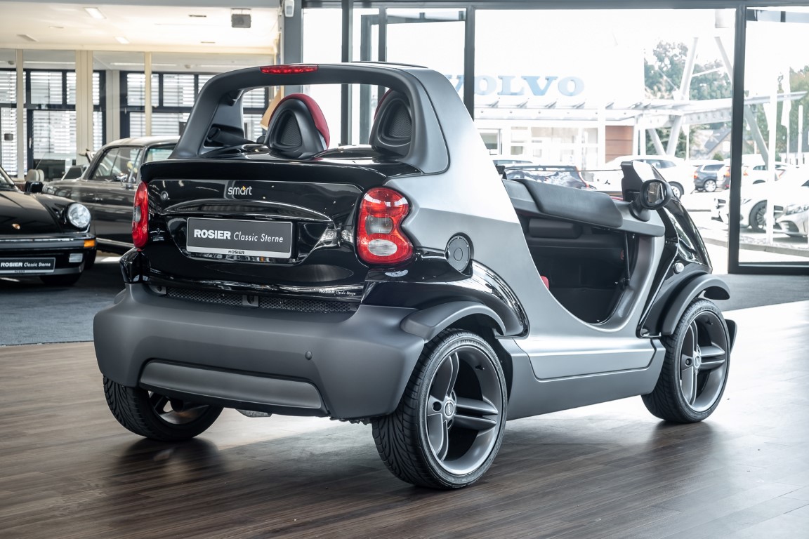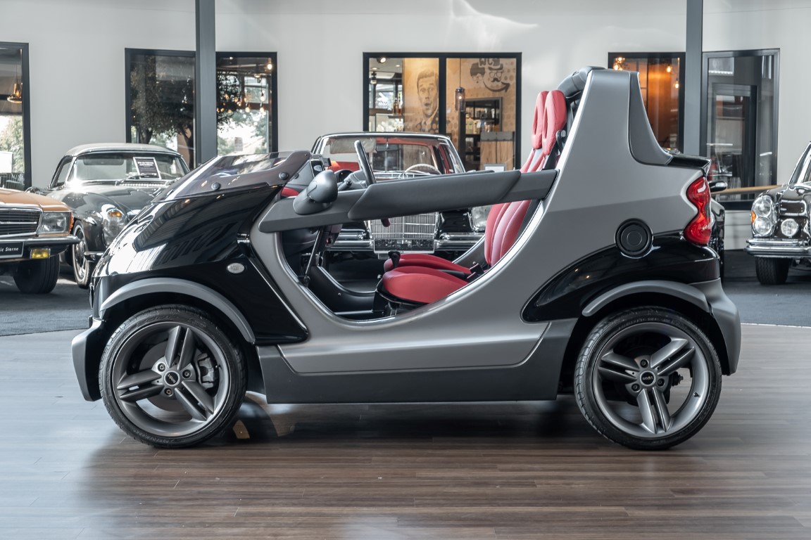 Finally, the vehicle was moved to the beautiful island of Sylt, where it certainly made a special appearance. As a sign for the exclusively manufactured quantity, each Smart Crossblade is decorated with a consecutively numbered metal sign. You can now purchase the number 1234. By the way, anyone who wanted to attract attention with this open-topped speedster back then had to spend a proud 24,360 euros. Get in, stand out and have fun.